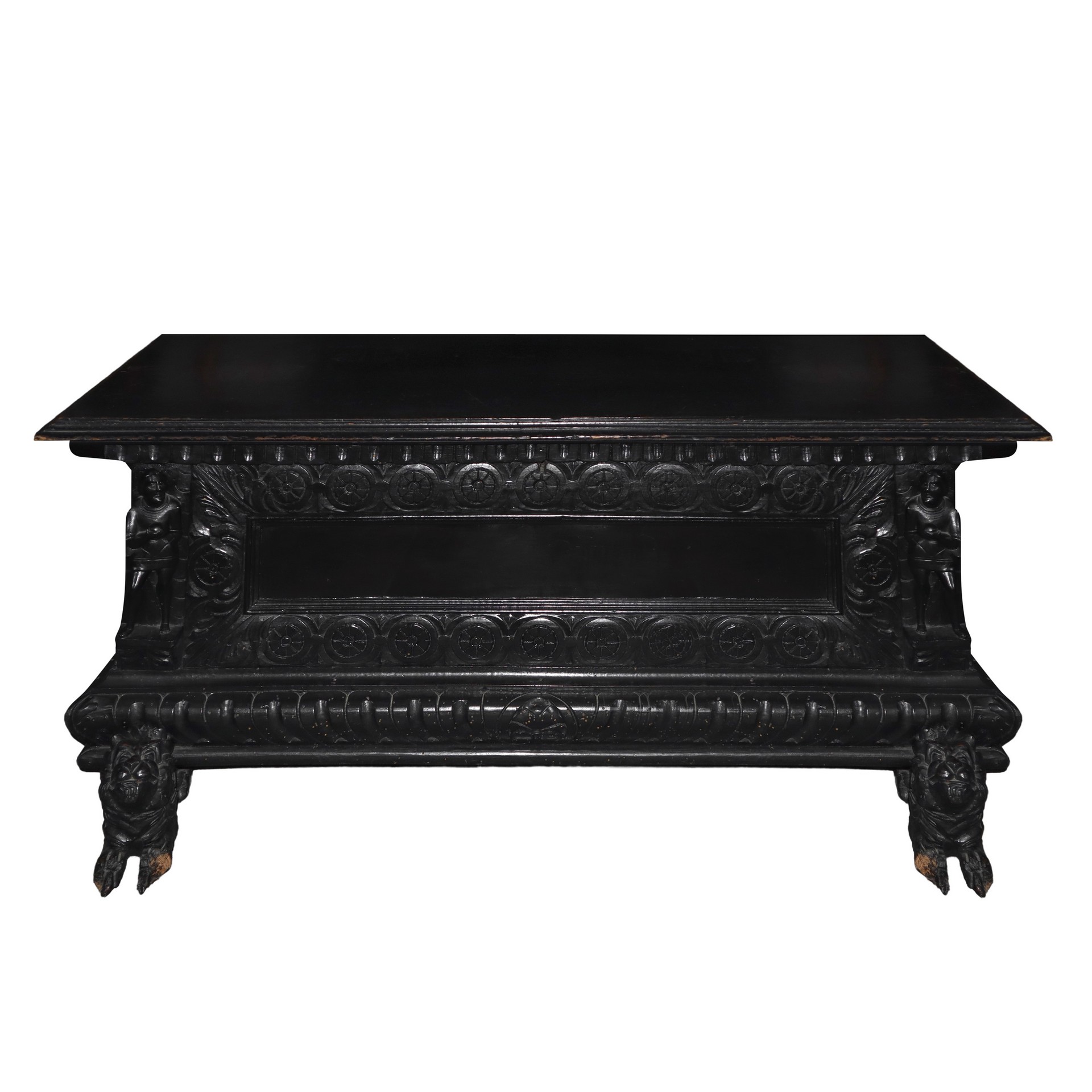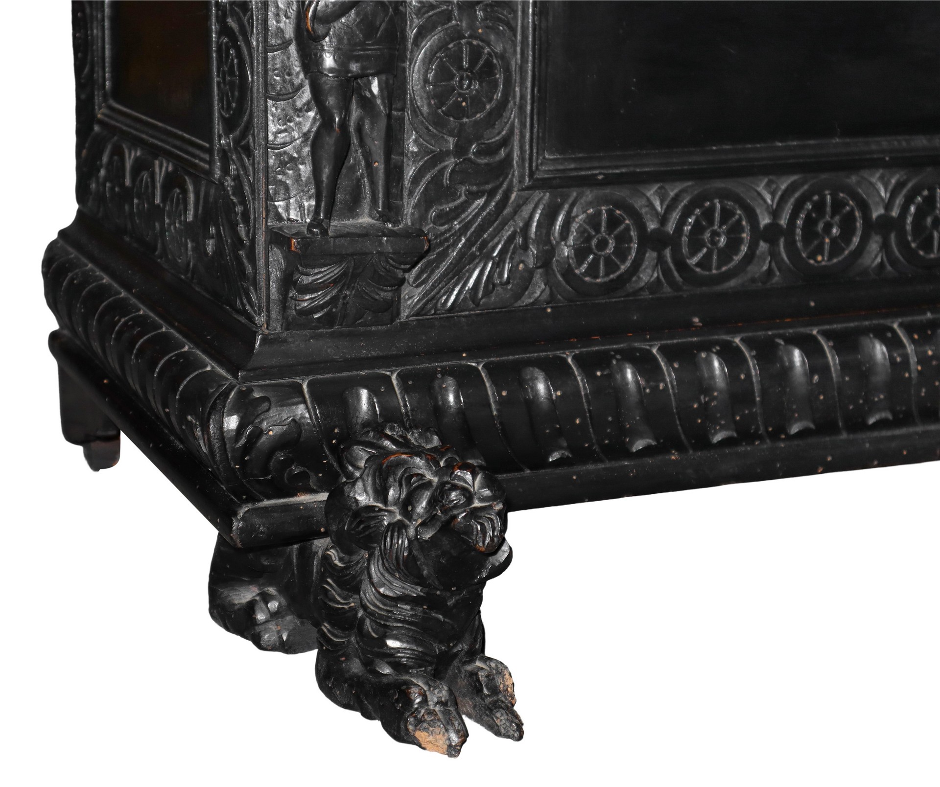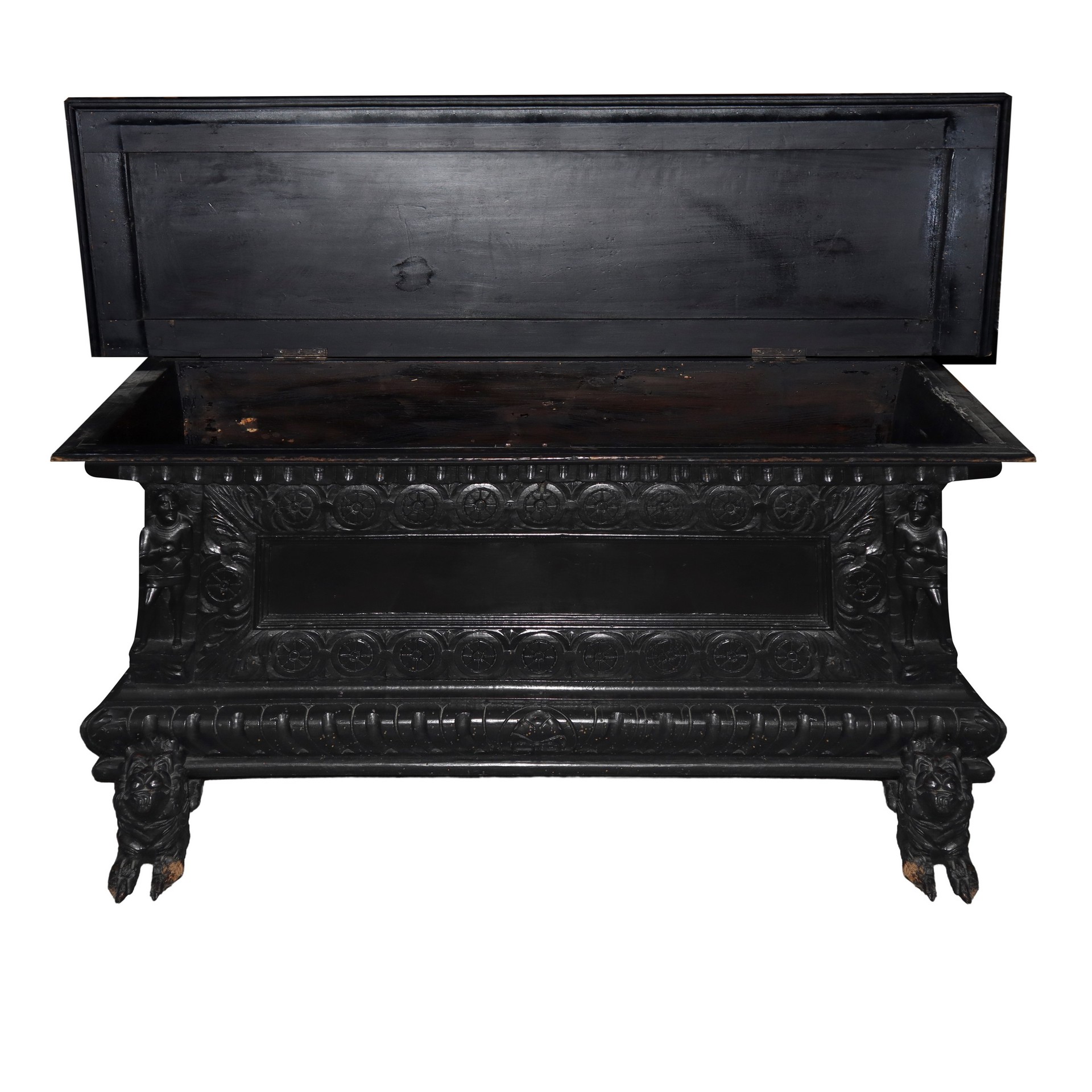 Cassapanca neorinascimentale in legno nero ebanizzato, Late 19 century