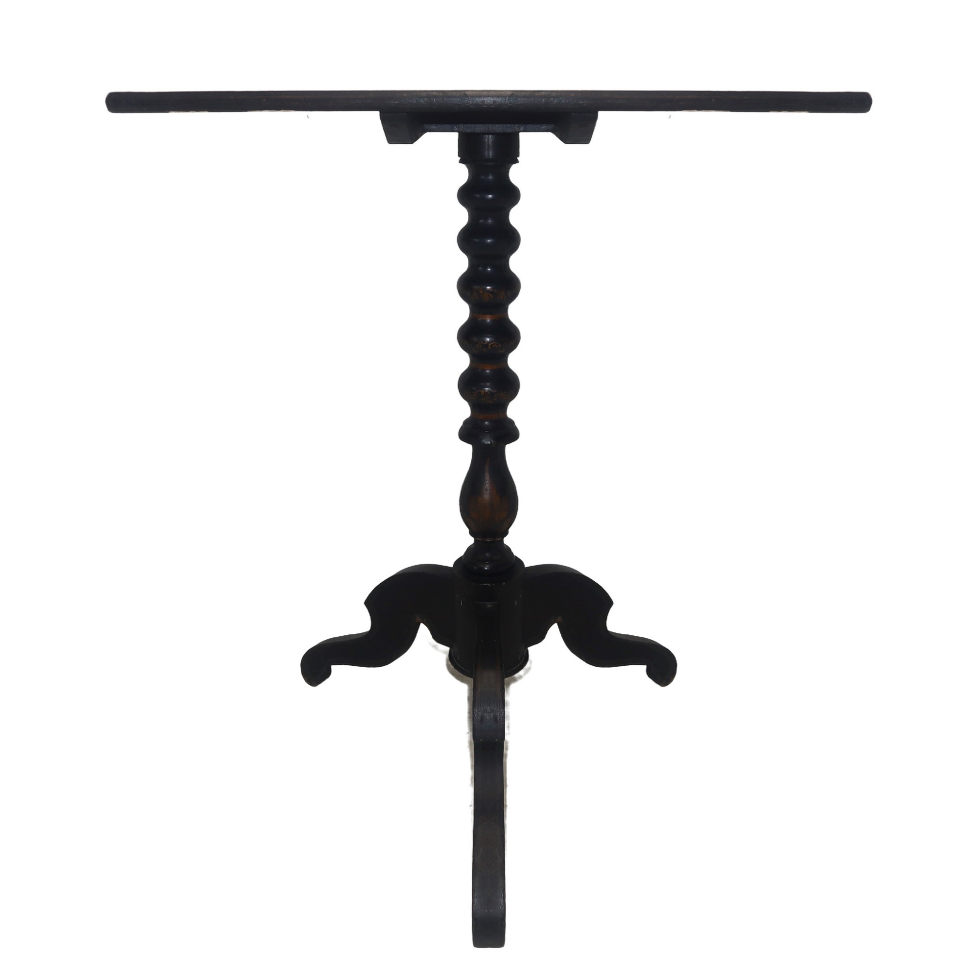 Tavolino in legno ebanizzato nero, 19 Secolo H cm 72, piano cm 62 x 42 Piano rettangolare dipinto con soggetti floreali, base Piano rettangolare dipinto con soggetti floreali, base