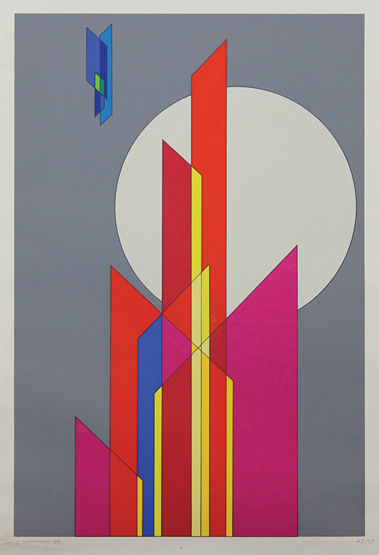 Veronesi Luigi Geometrie, 1989 litografia su carta, cm. 70x50, es. 48/99 firmata e datata in basso a sinistra, presenti piccole macchie nei margini bianchi del foglio