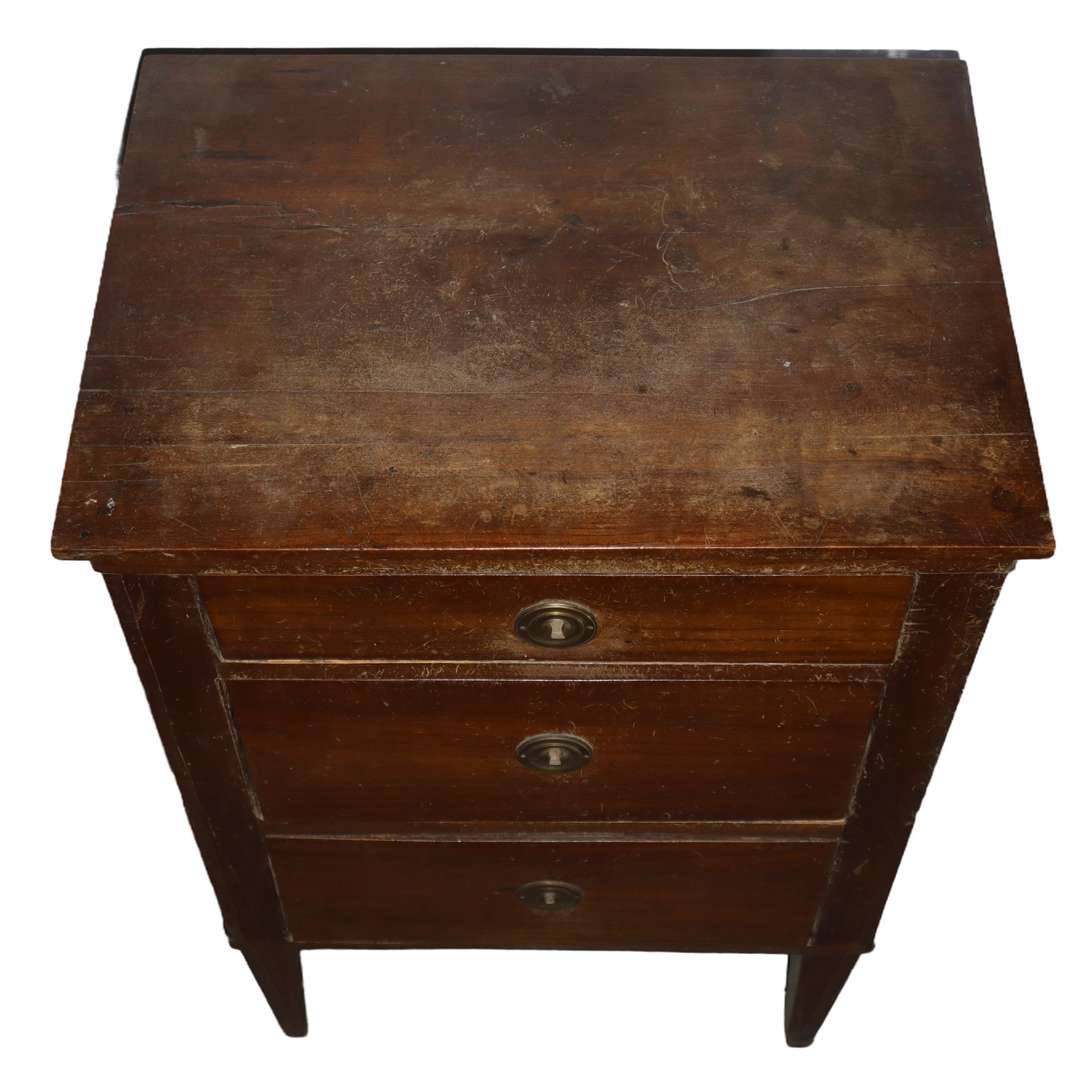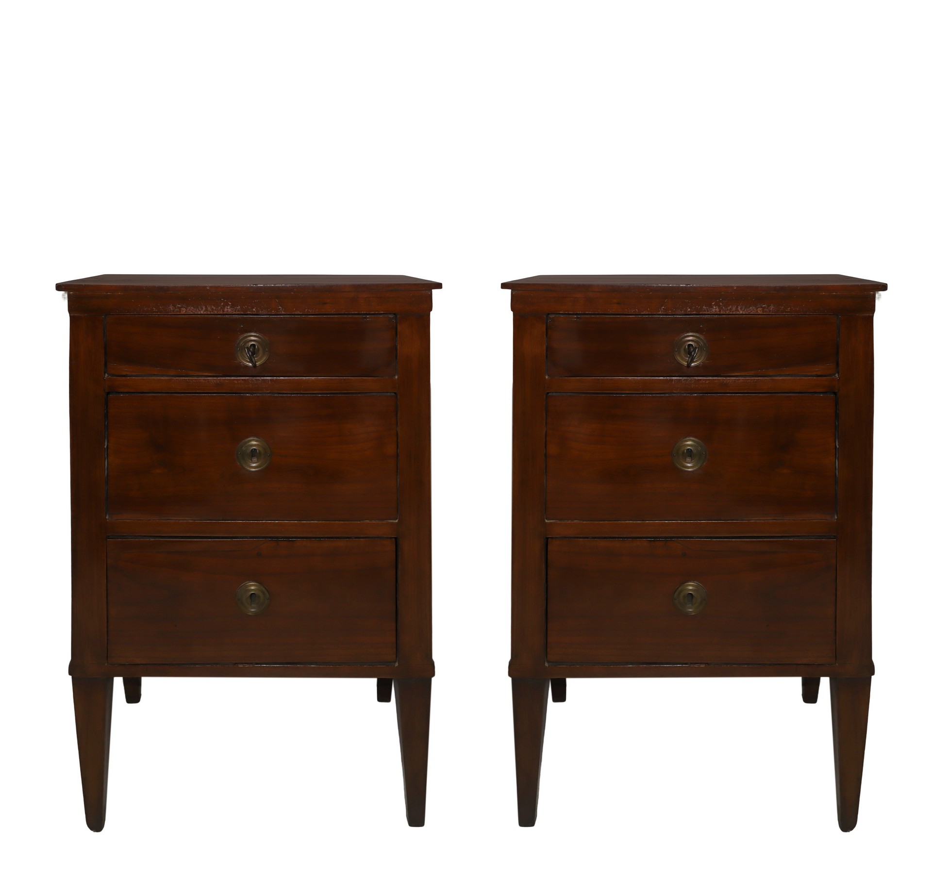Coppia di Comodini Luigi XVI, in massello di mogano, Late 18 Secolo H cm 80x53x40 Tre cassetti e piedi troncopiramidali. Maestranze artigianali Siciliane Tre cassetti e piedi troncopiramidali. Maestranze artigianali Siciliane