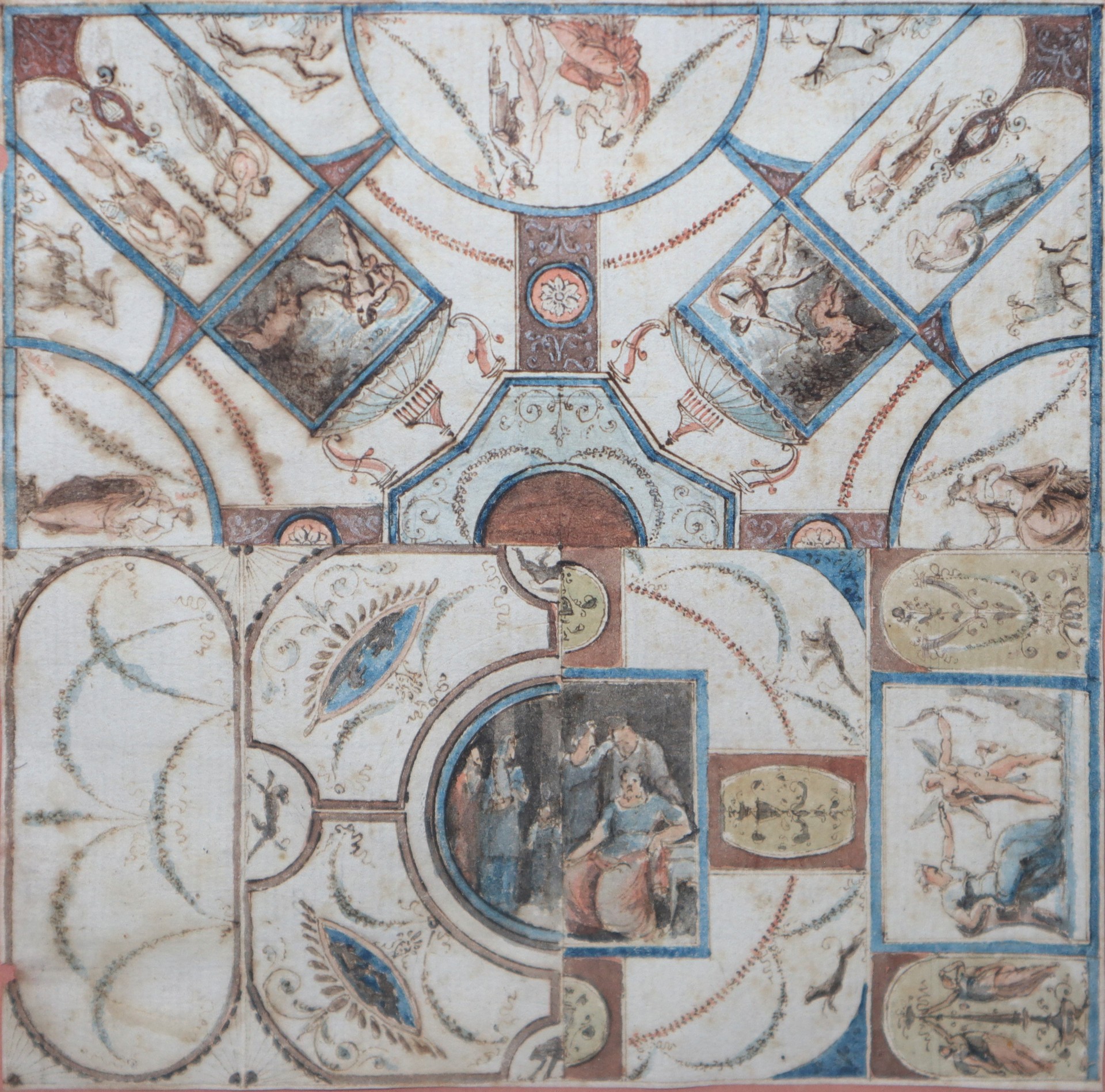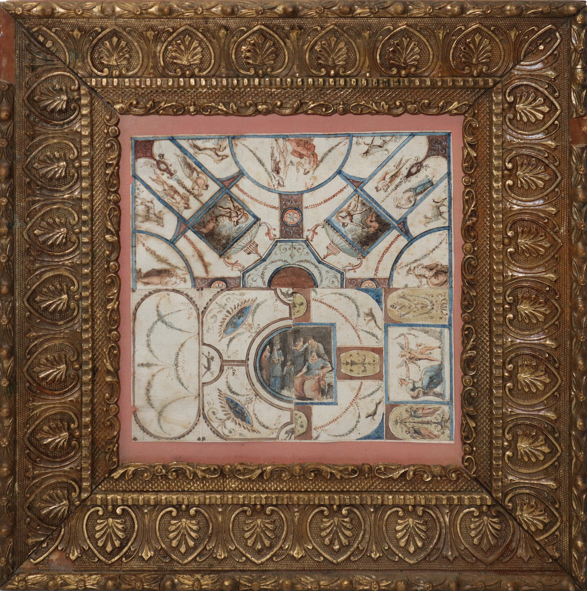 Personaggi con soggetti mitologici, Neoclassical style Late 19 Secolo H cm 14,5 x 14,5 / in cornice 26 x 27 Acquerello su carta vergellata Cornice postuma
