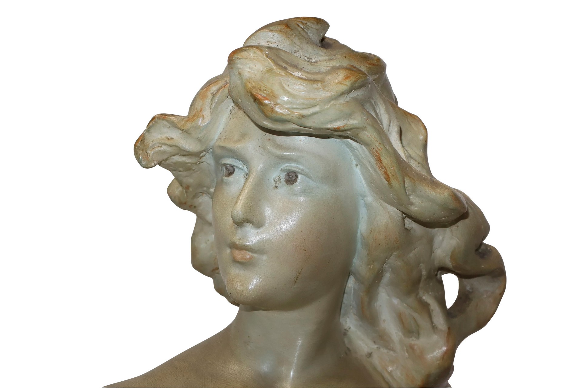 Gelosia, giovane donna, Liberty H cm 48, base cm 14,5x17 Scultura in terracotta