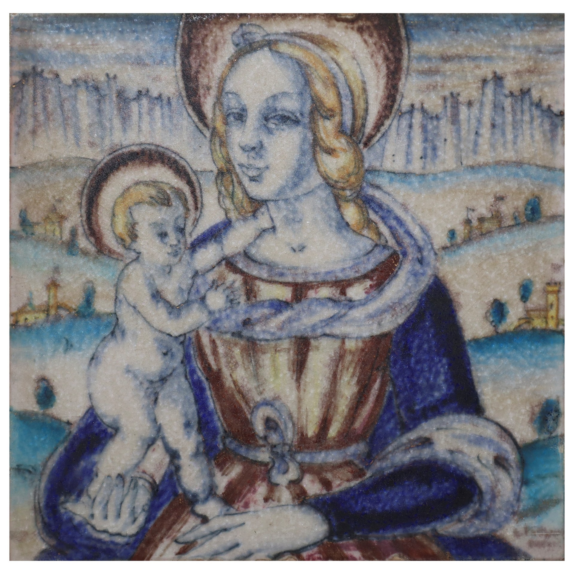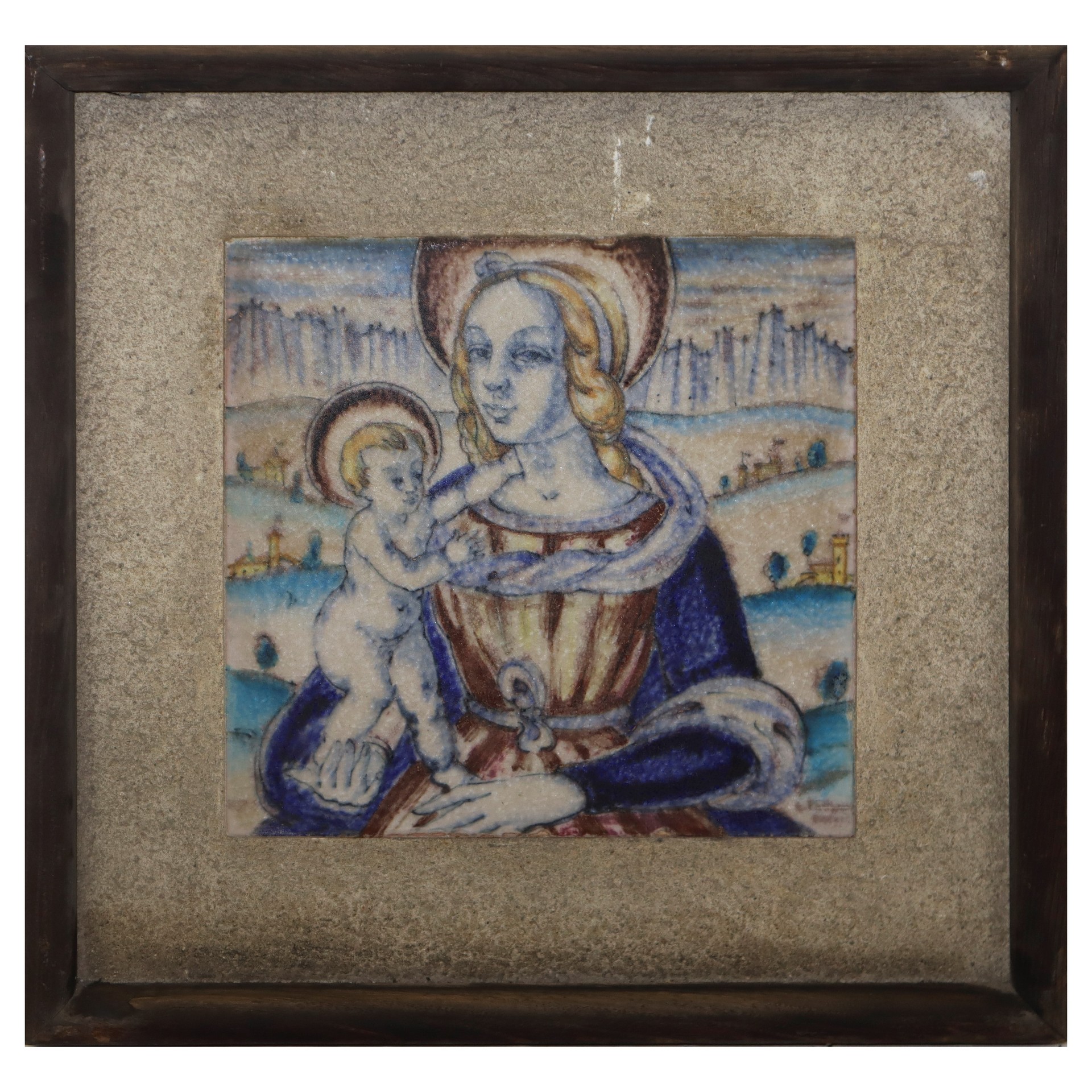 Madonna con bambino, 20 Secolo Cm 26 x 26 in cornice 40 x 40 Su marmo