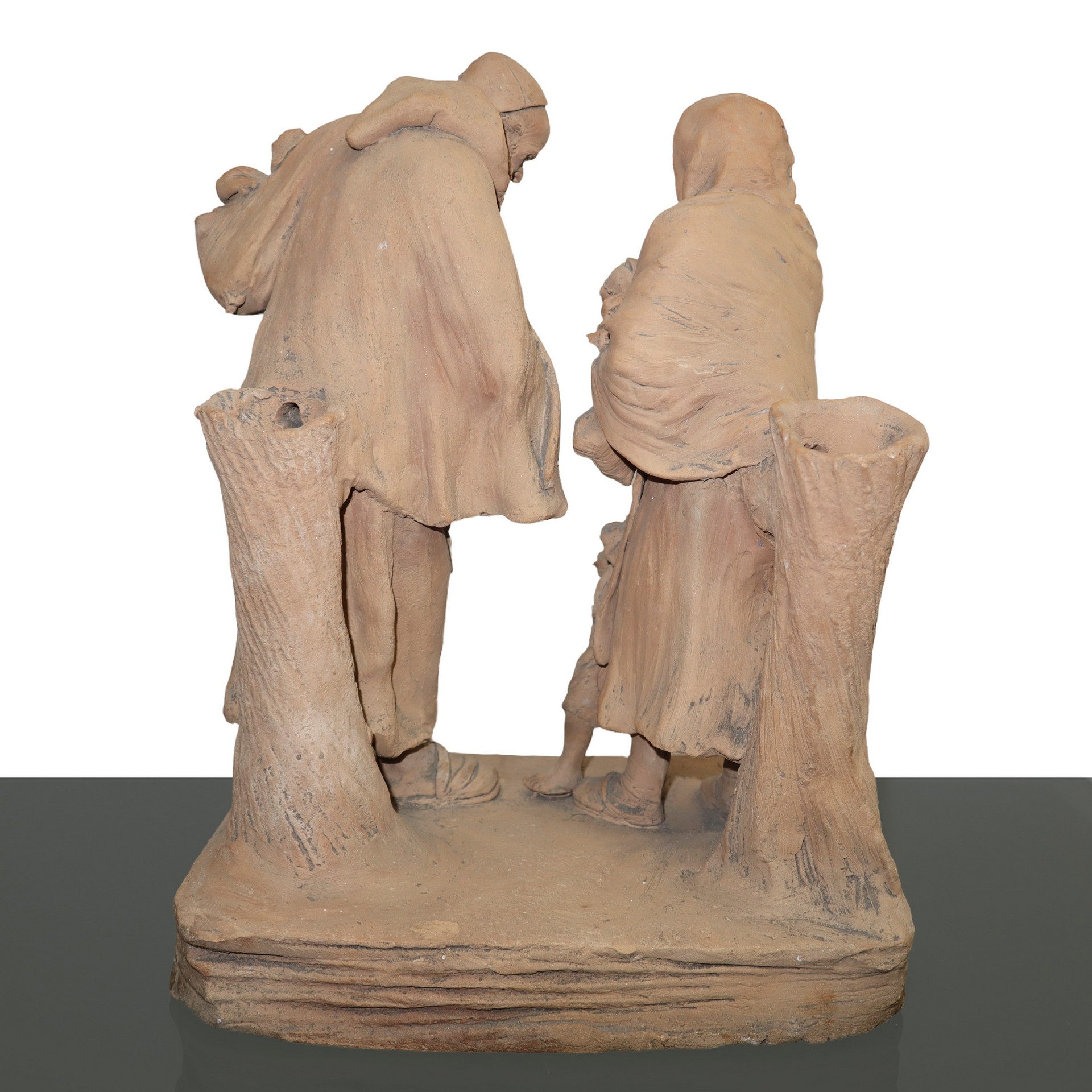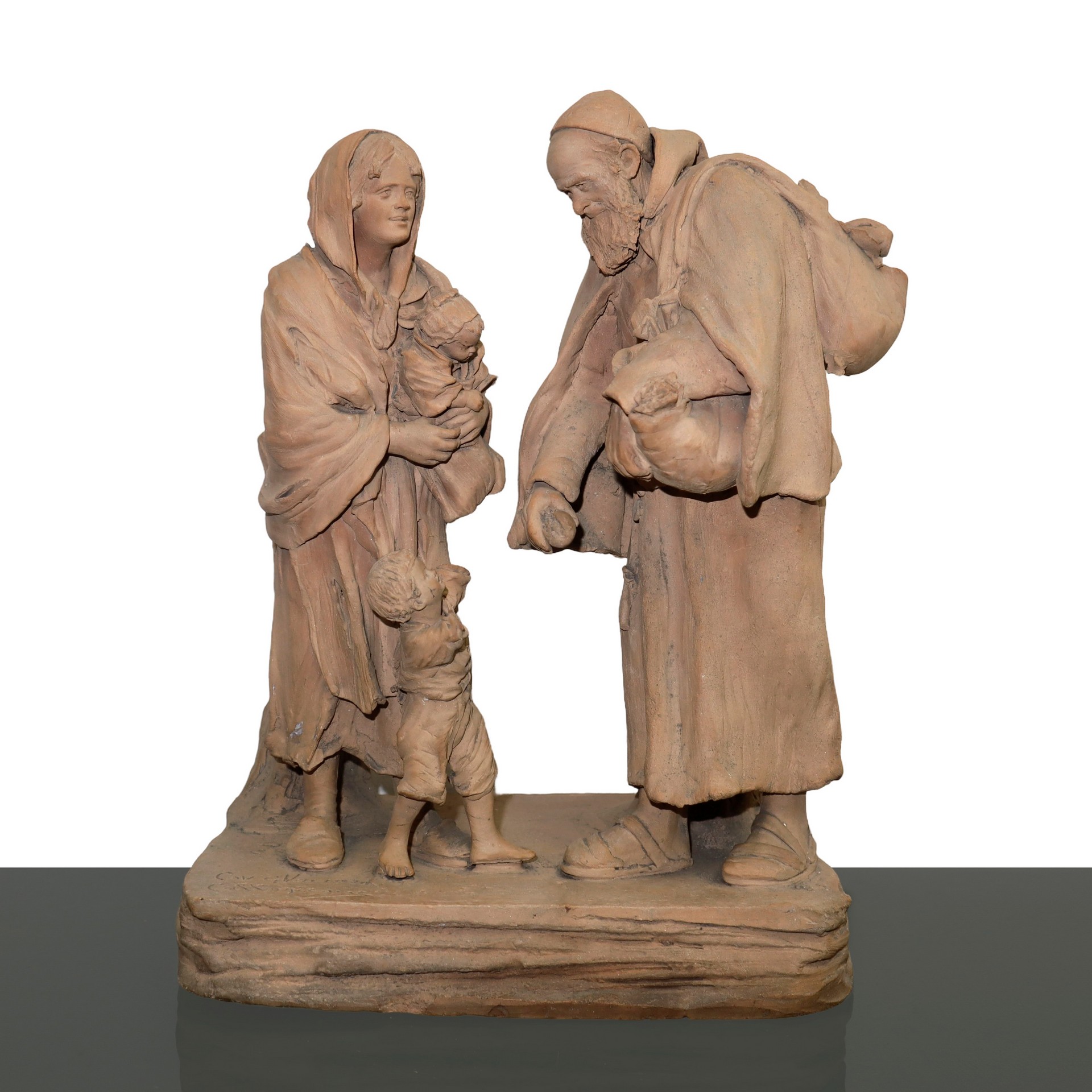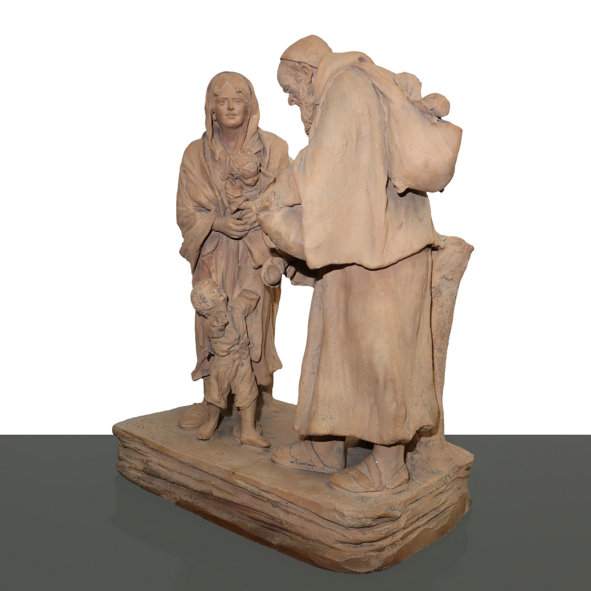 Bongiovanni Vaccaro (Caltagirone 1807-Caltagirone 28 novembre 1889) - Terracotta manifattura Caltagirone firmata Cav. G. Vaccaro, frate raccoglie le offerte cm 32 base cm 24 x 17