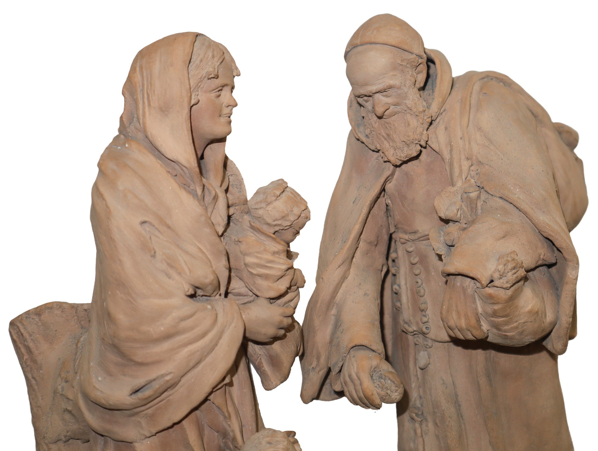 Bongiovanni Vaccaro (Caltagirone 1807-Caltagirone 28 novembre 1889) - Terracotta manifattura Caltagirone firmata Cav. G. Vaccaro, frate raccoglie le offerte