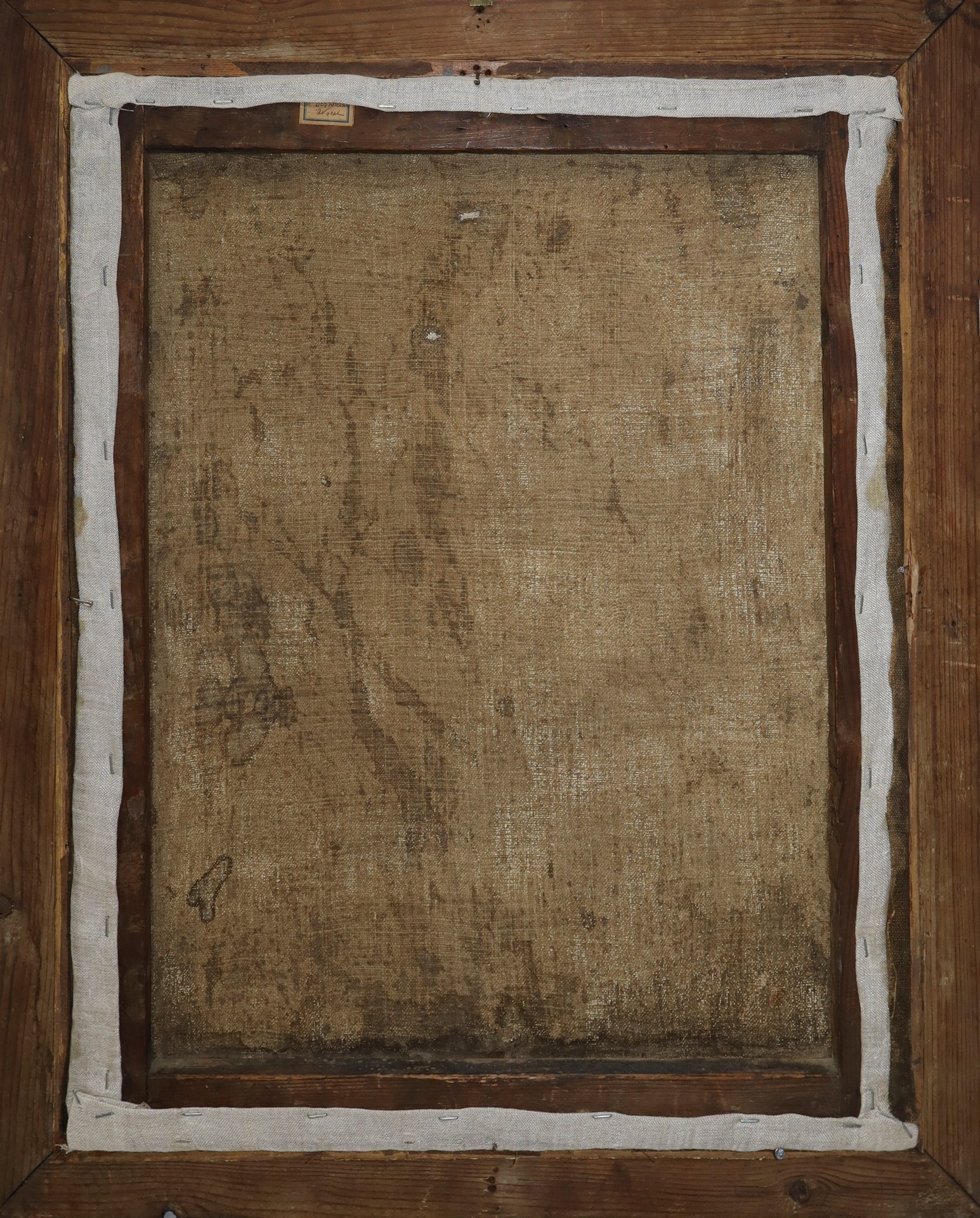 Ritratto di anziano con bastone, 19 Secolo cm57x46; in cornice cm68x57 Olio su tela Firmato in basso a destra.