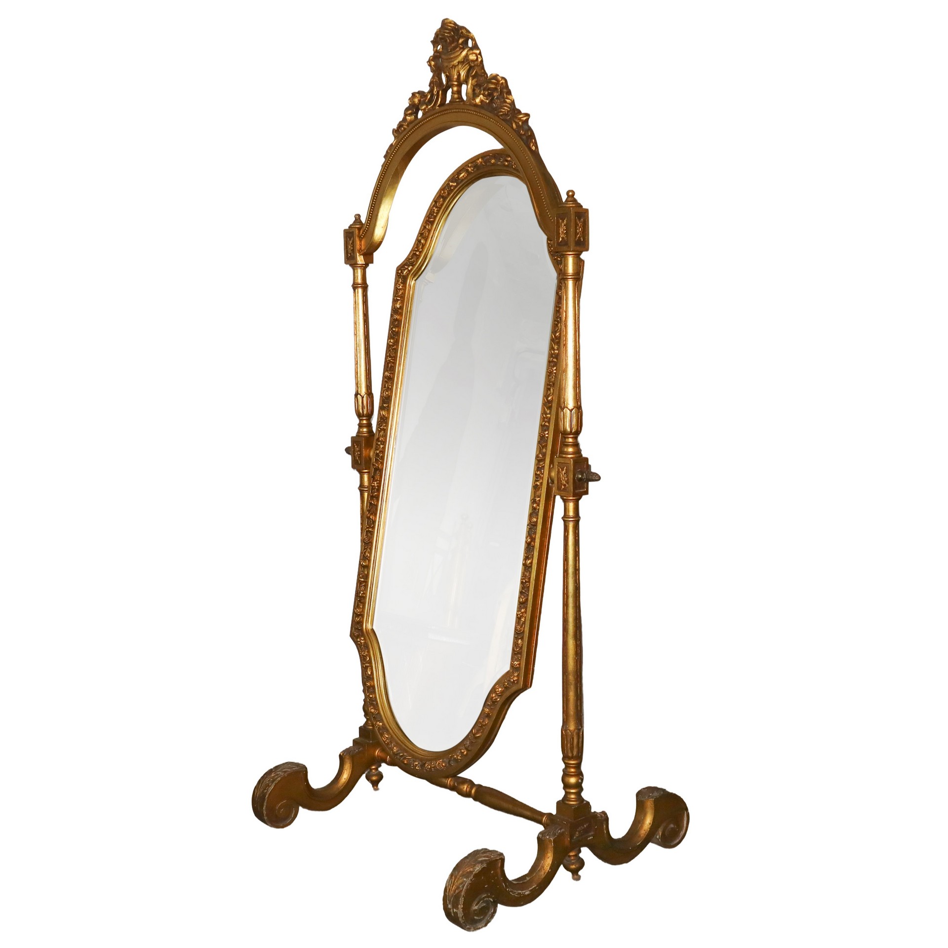 Specchiera basculante sagomata in legno dorato h cm 190 x 87 x 70