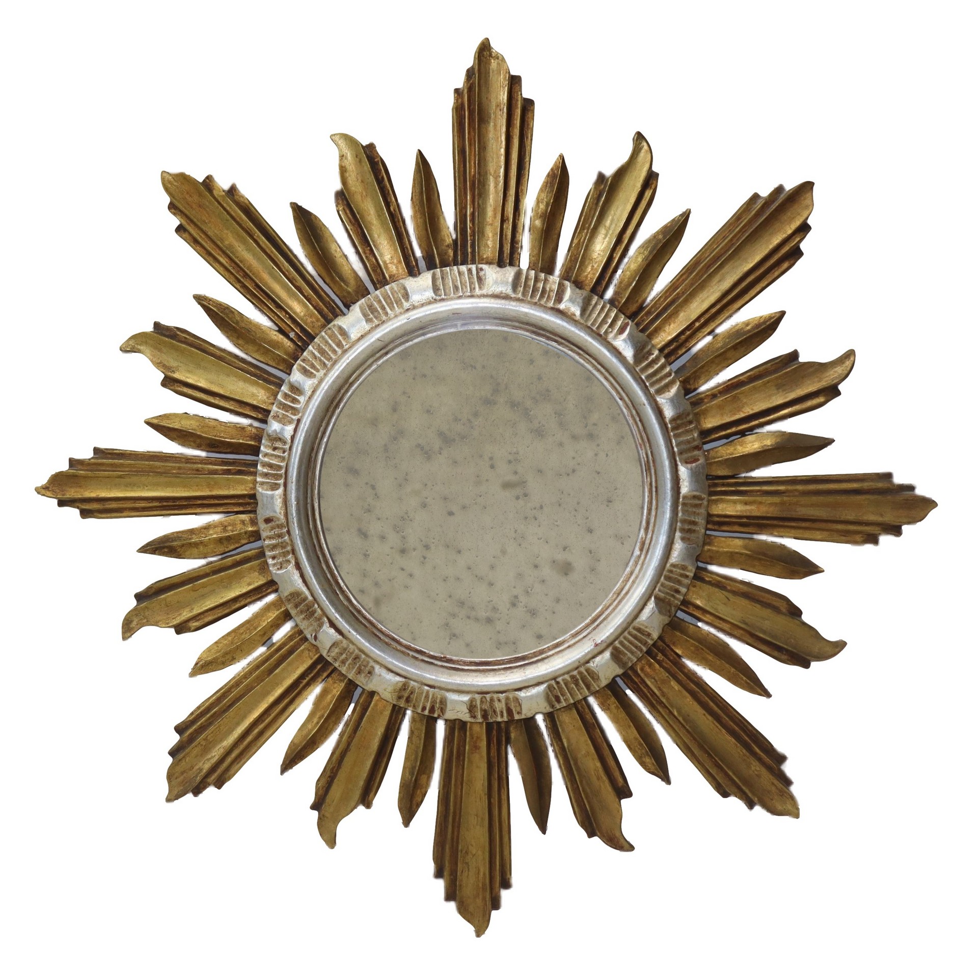 Specchio da sole a raggiera, Early 20 Secolo D cm 61 Legno dorato e argentatoLegno dorato e argentato