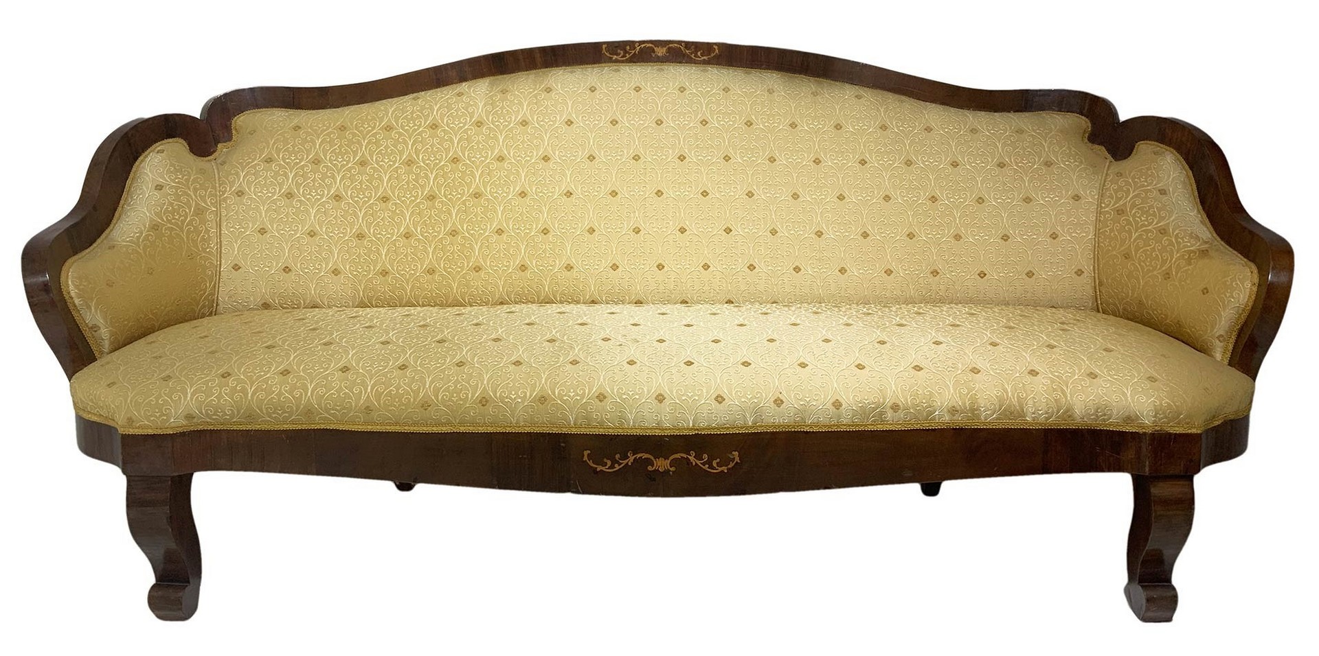 Divano con intarsi centrali alla base della seduta e spalliera, Louis Philippe, 19 century