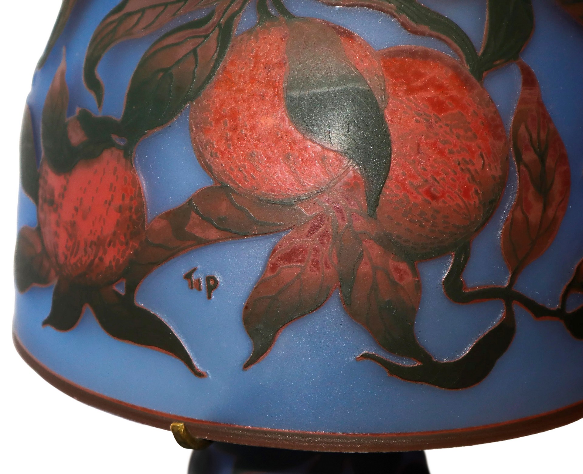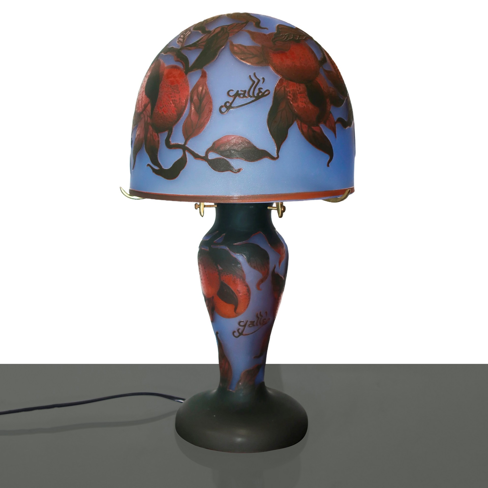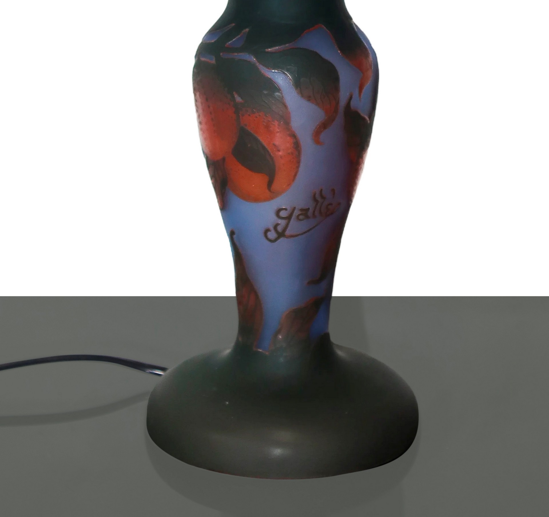 Lume nello stile Gallè H cm 37 Base azzura, fiori rossiBase azzura, fiori rossi