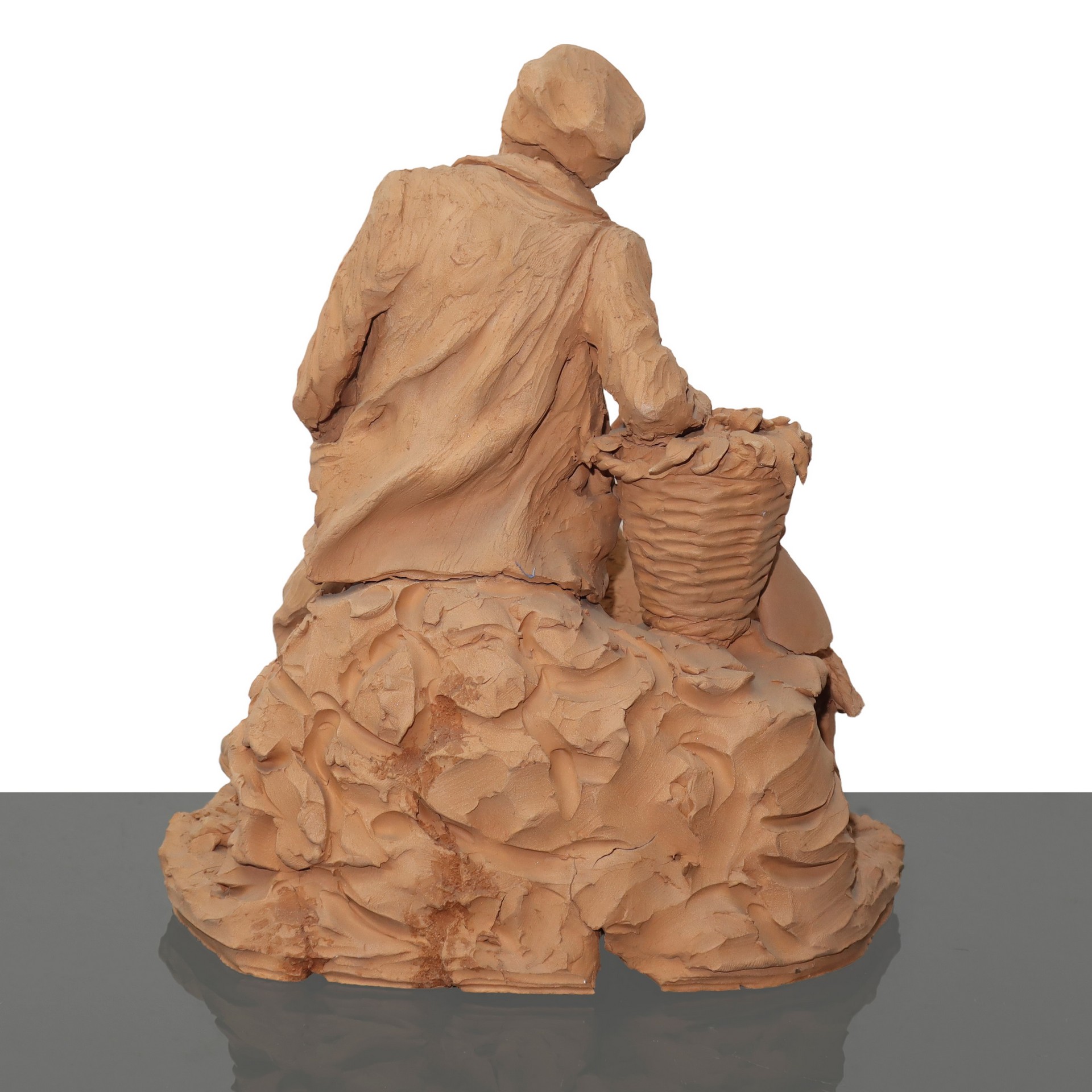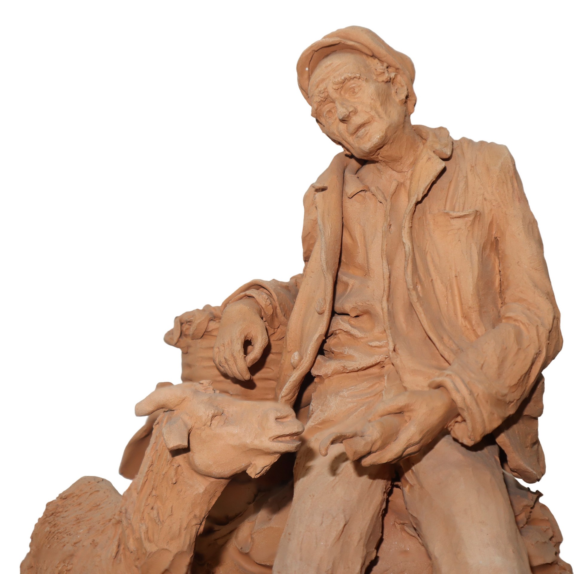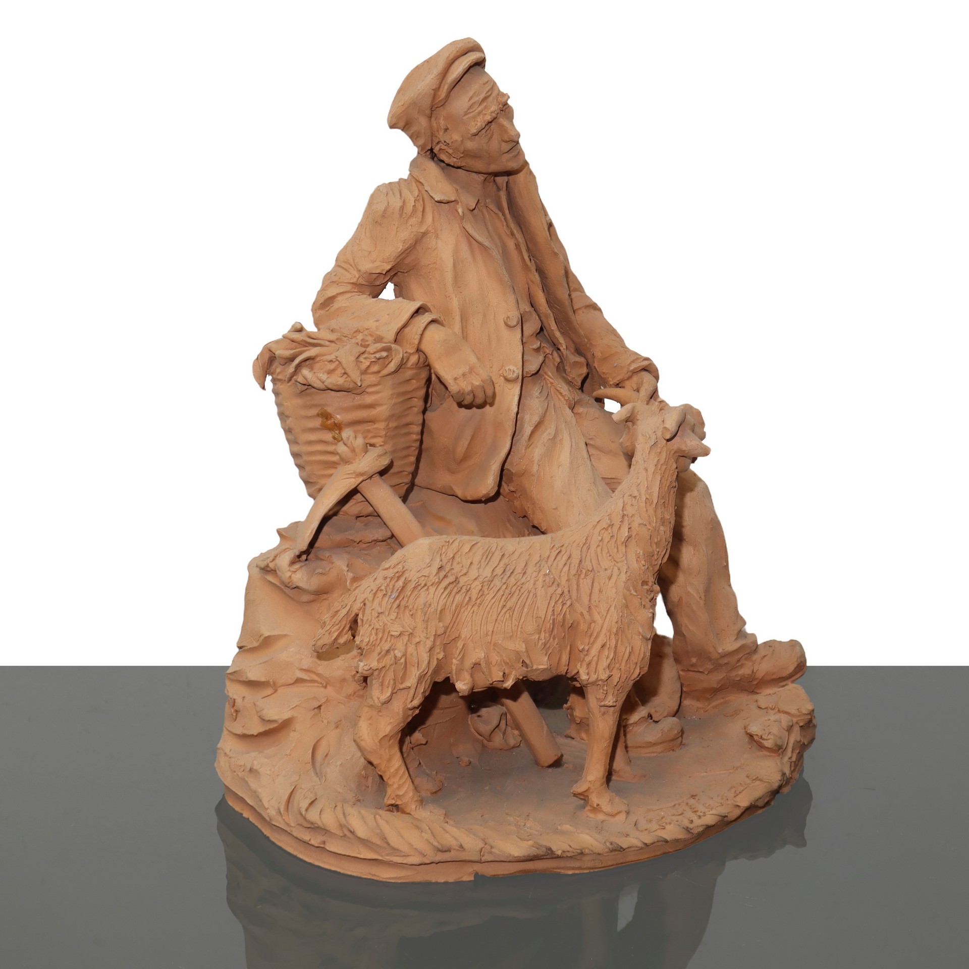 Pastore con capretta in terracotta di Caltagirone H cm 28x25. Firmato alla base CrisafiFirmato alla base Crisafi