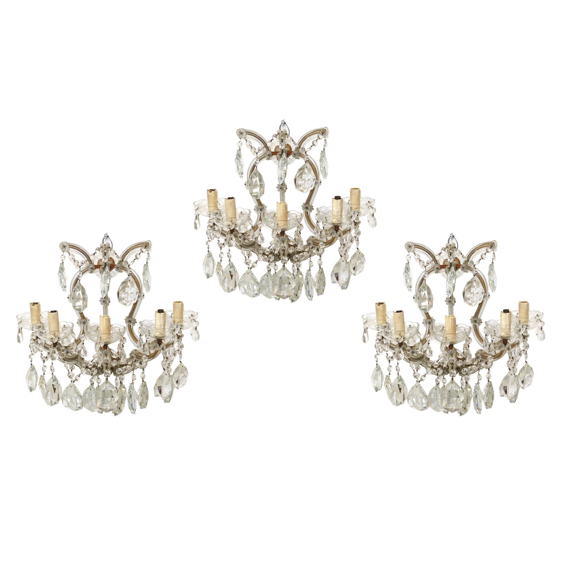 Gruppo di N. 3 Applique in vetro, Maria Teresa, a 5 luci con brindoli, Early 20 century