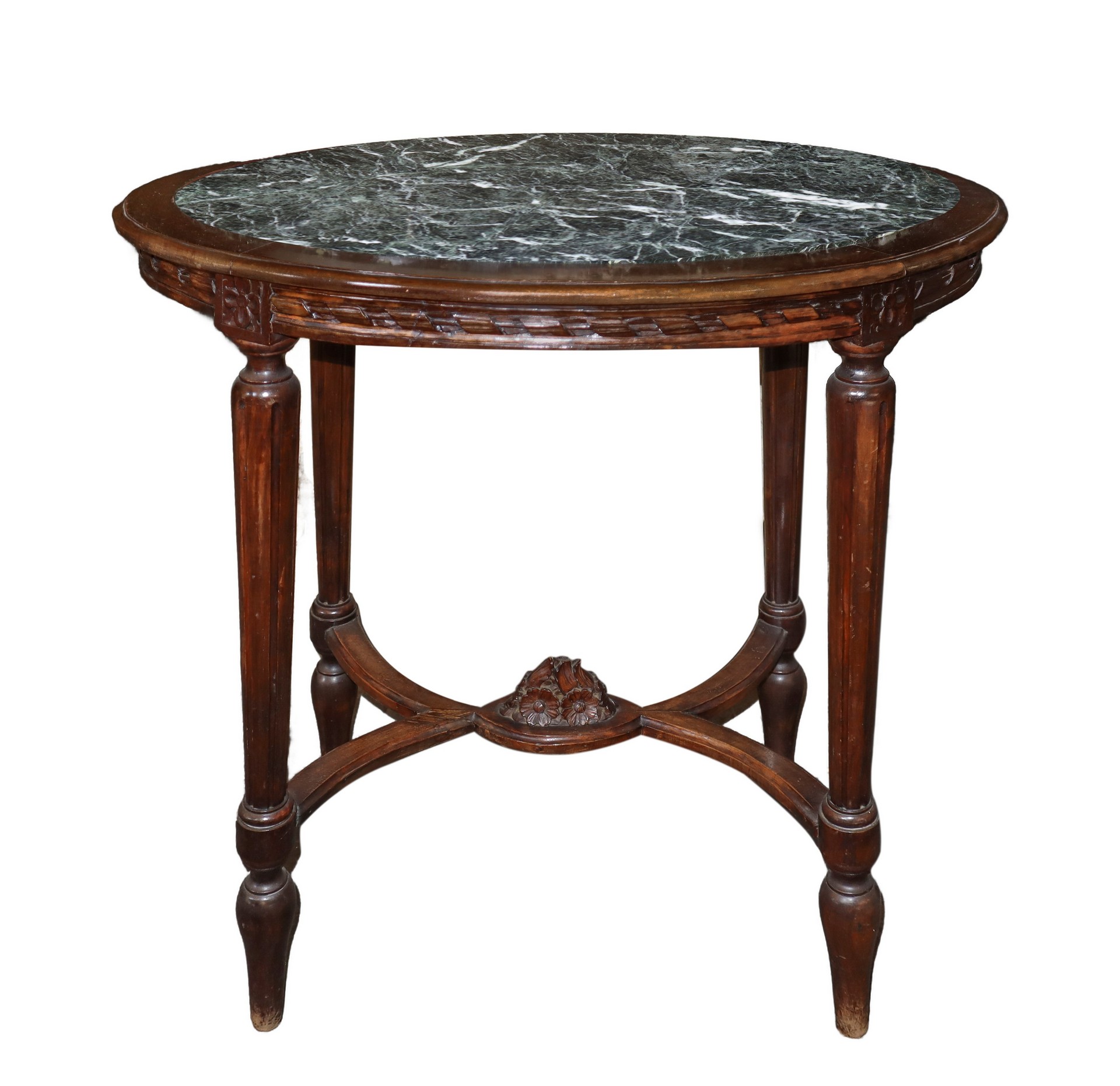 Tavolinetto con marmo al piano grigio scuro screziato bianco, Late 19 century