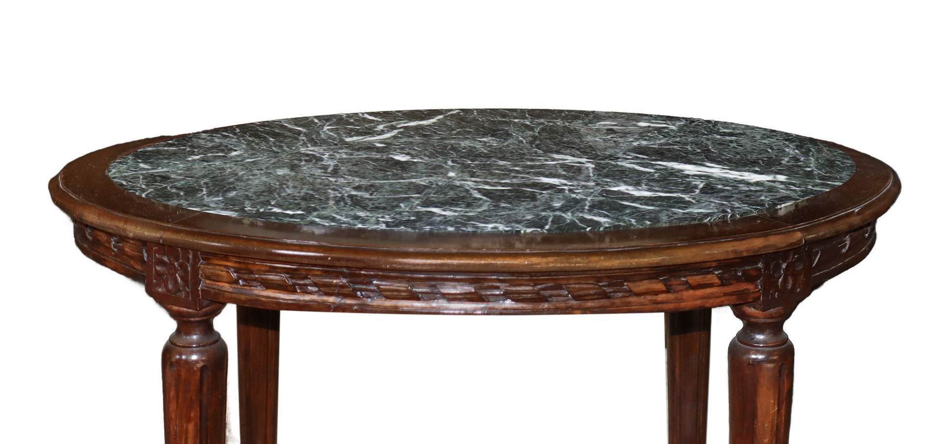Tavolinetto con marmo al piano grigio scuro screziato bianco, Late 19 Secolo H cm 73, diametro cm 77
