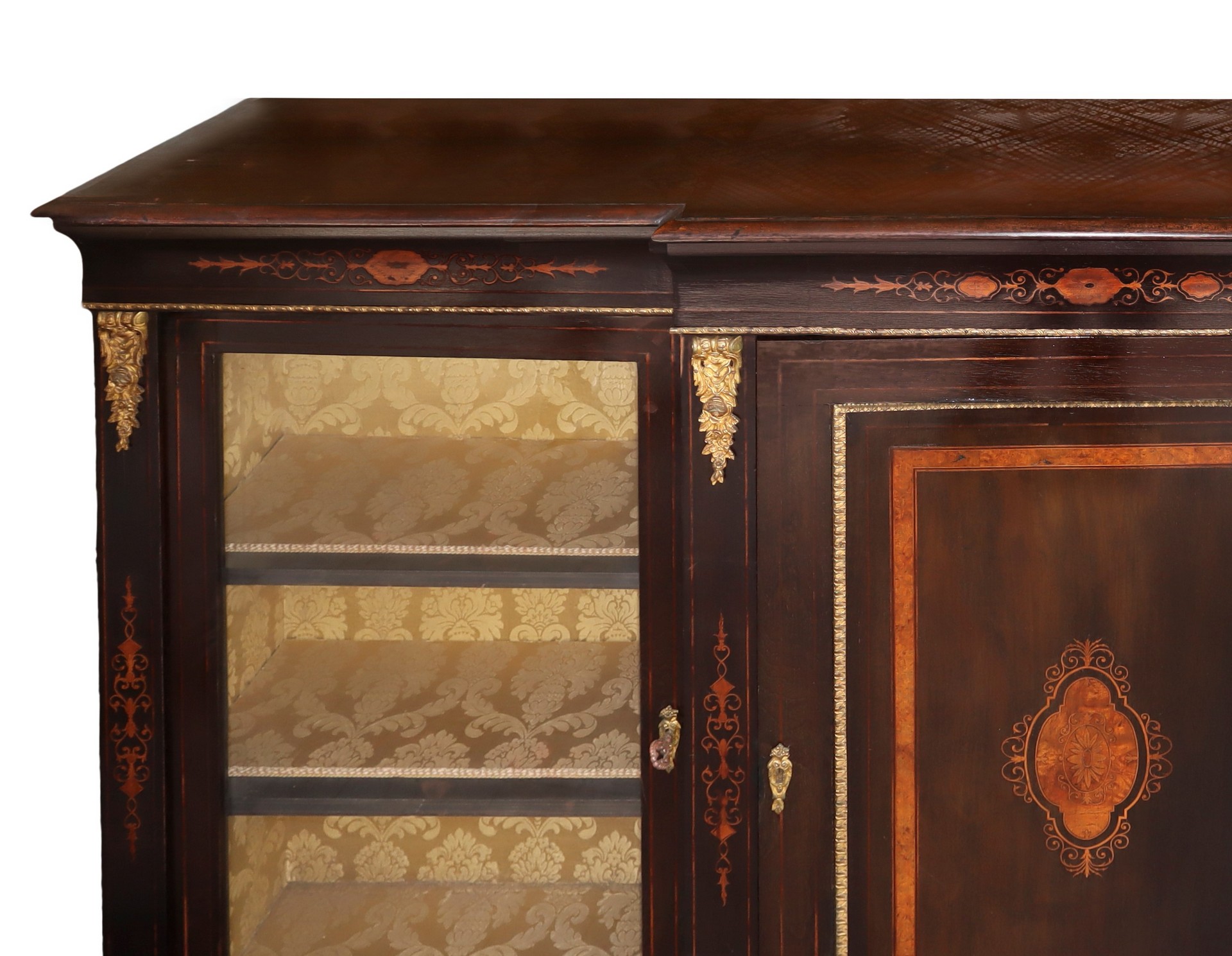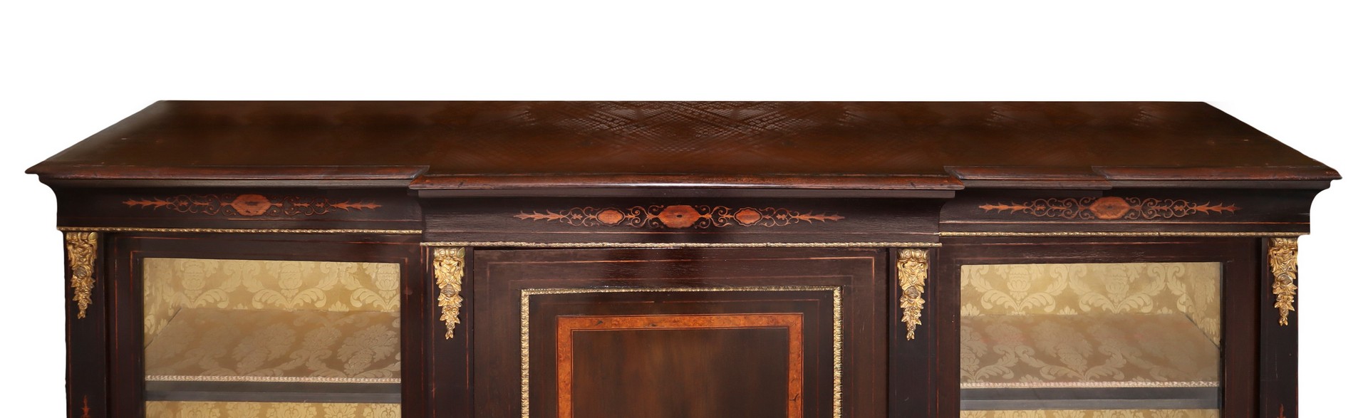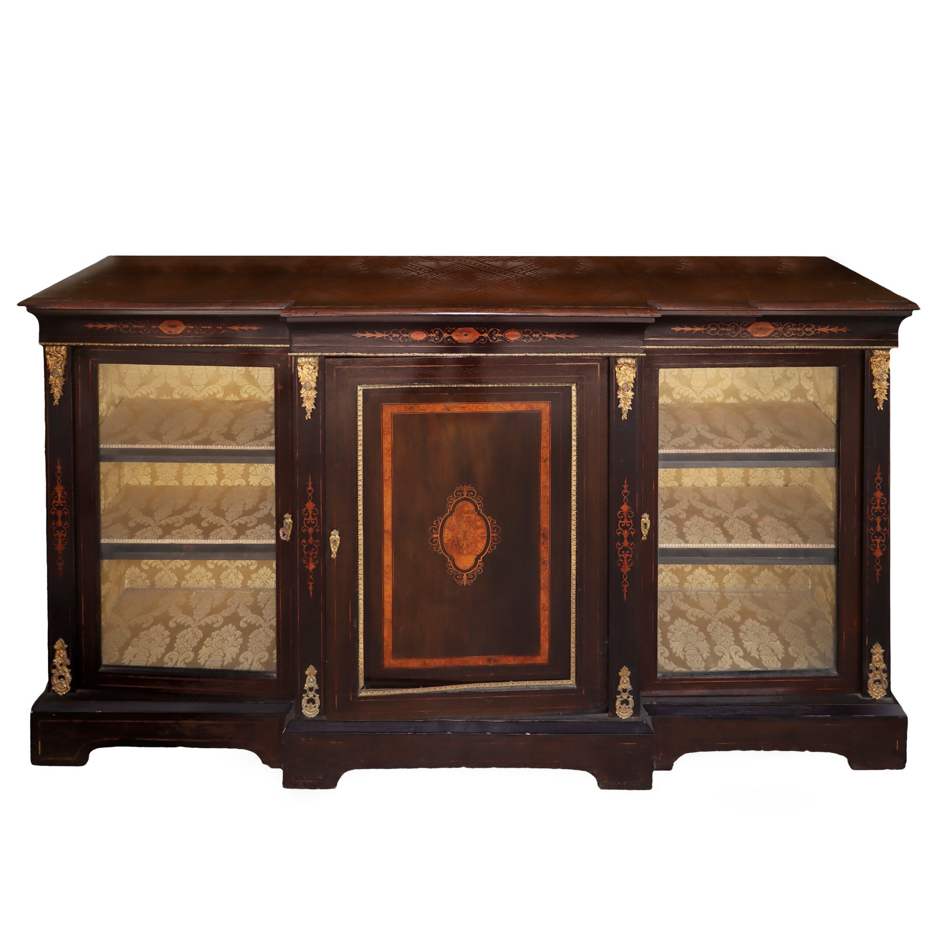 Credenza bassa stile Napoleone III Sportelli centrale in legno e sportelli laterali a vetriSportelli centrale in legno e sportelli laterali a vetri