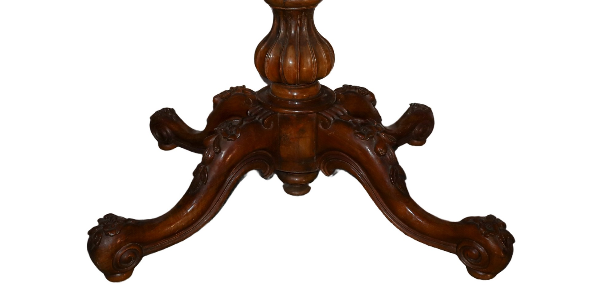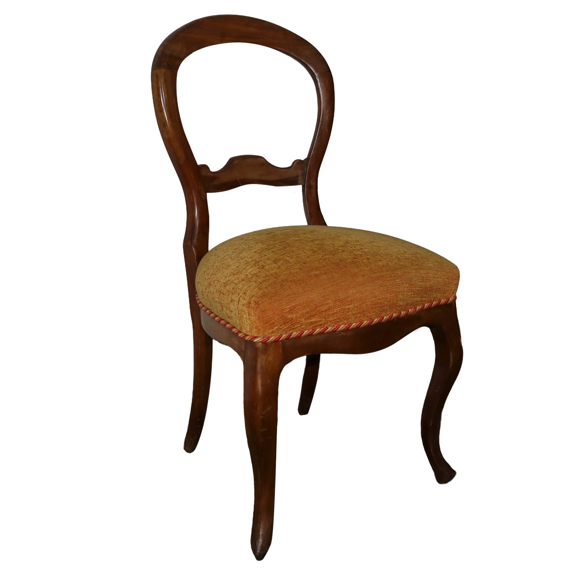 Tavolo ovale a biscotto in radica di noce più 6 sedie, 19 Secolo H cm 79 x 152 x 115 Piede centrale a quattro razzePiede centrale a quattro razze