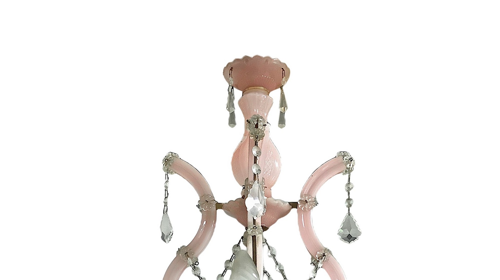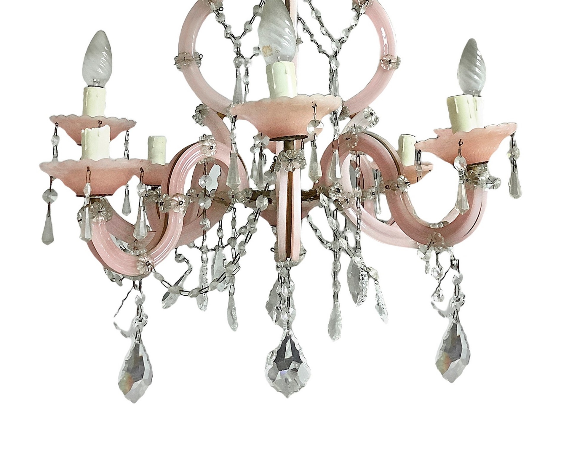Lampadario in vetro di Murano, colore rosa, 8 luci, 20 Secolo H cm 70, diametr0 60 Stile Maria TeresaStile Maria Teresa