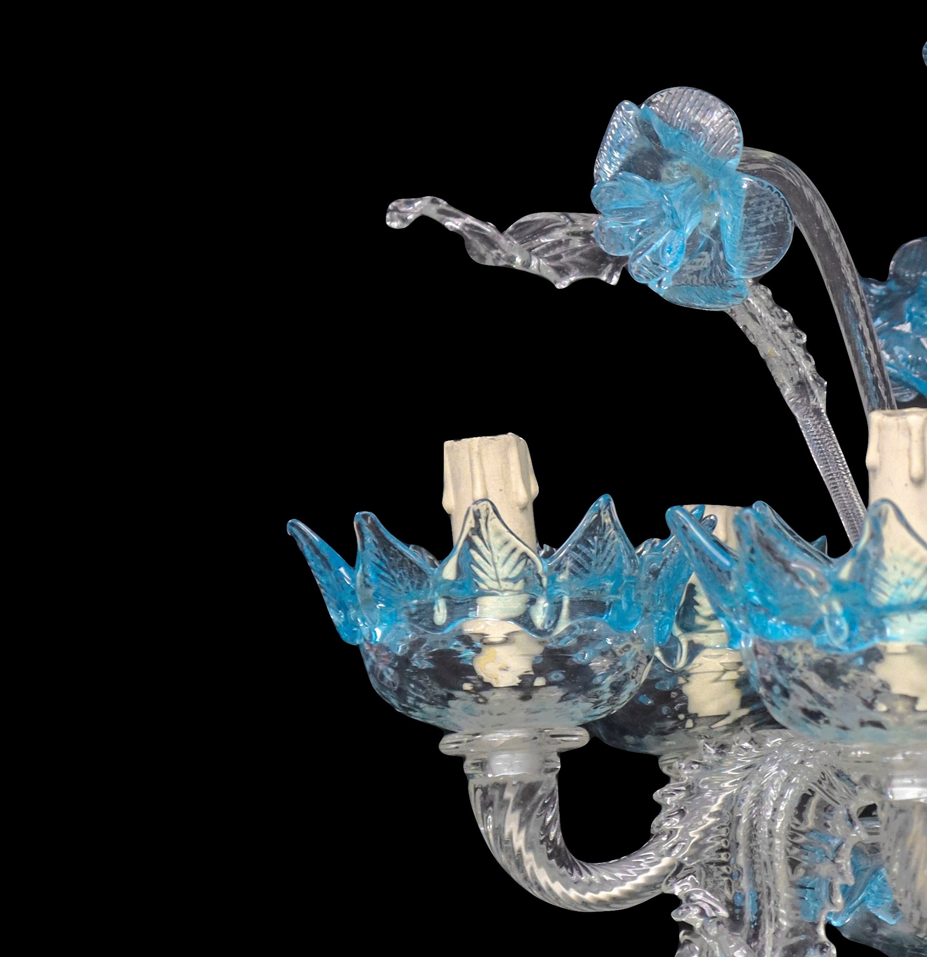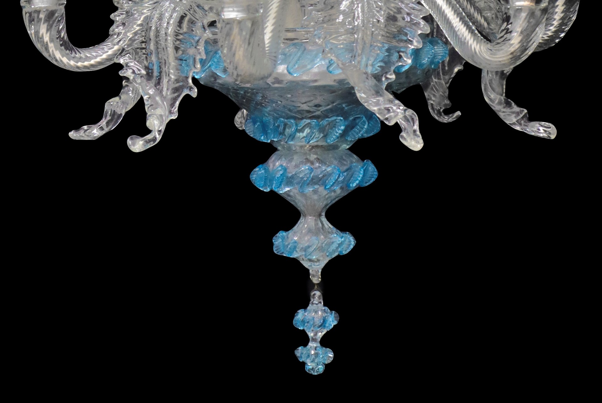 Lampadario vetro di Murano celeste a 6 luci, 20 century