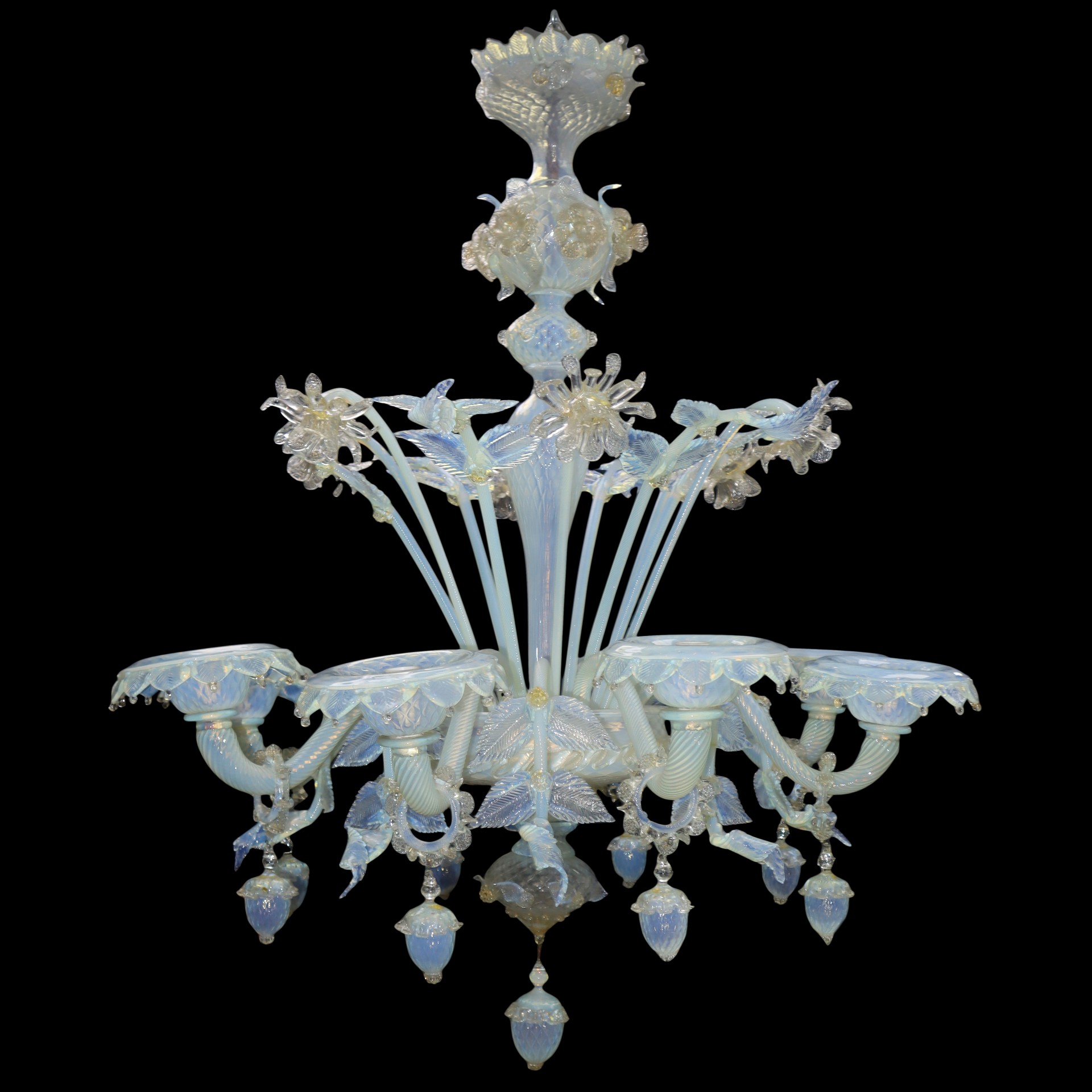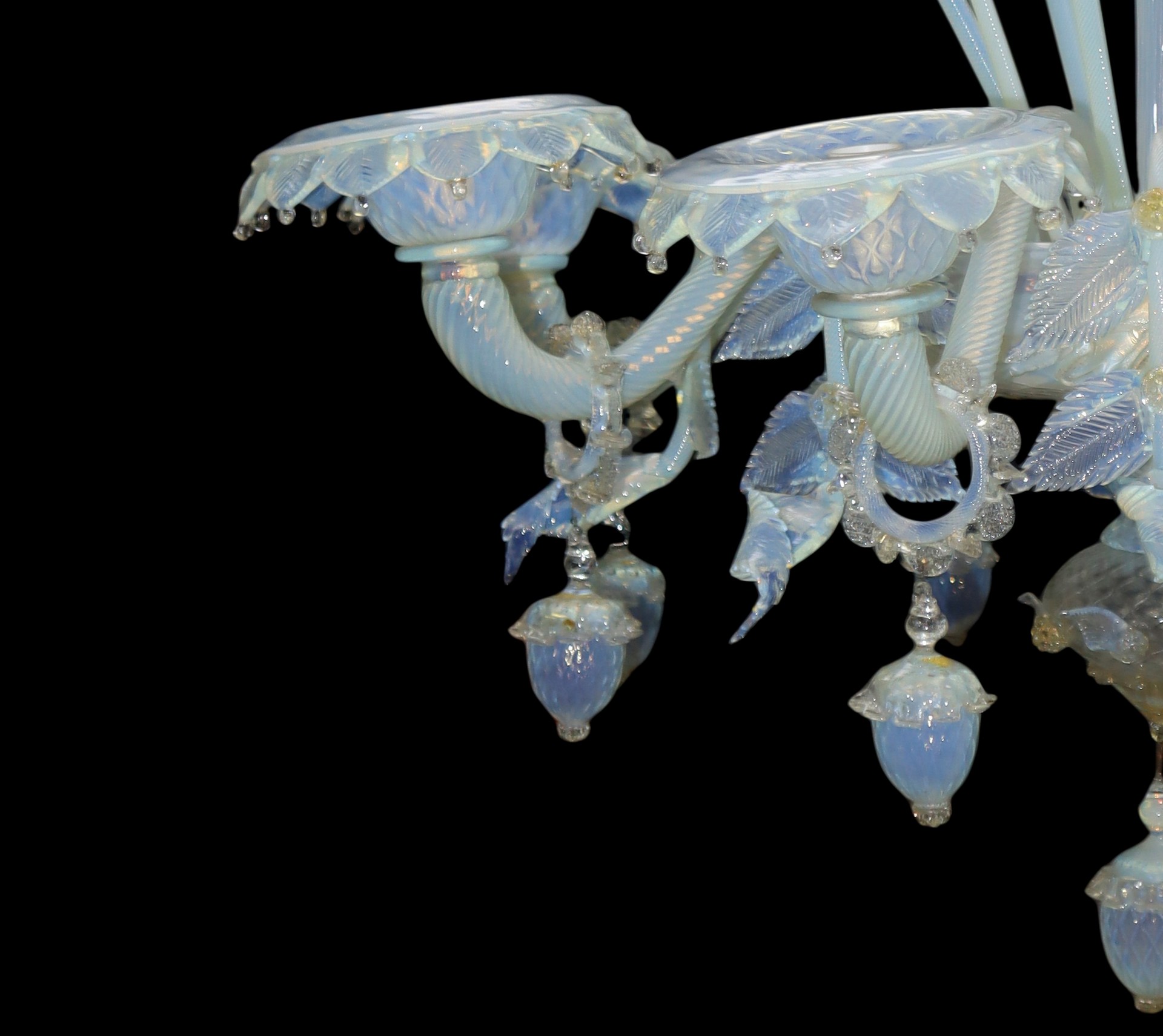 Lampadario vetro di Murano lattimo a 8 luci , 20 century