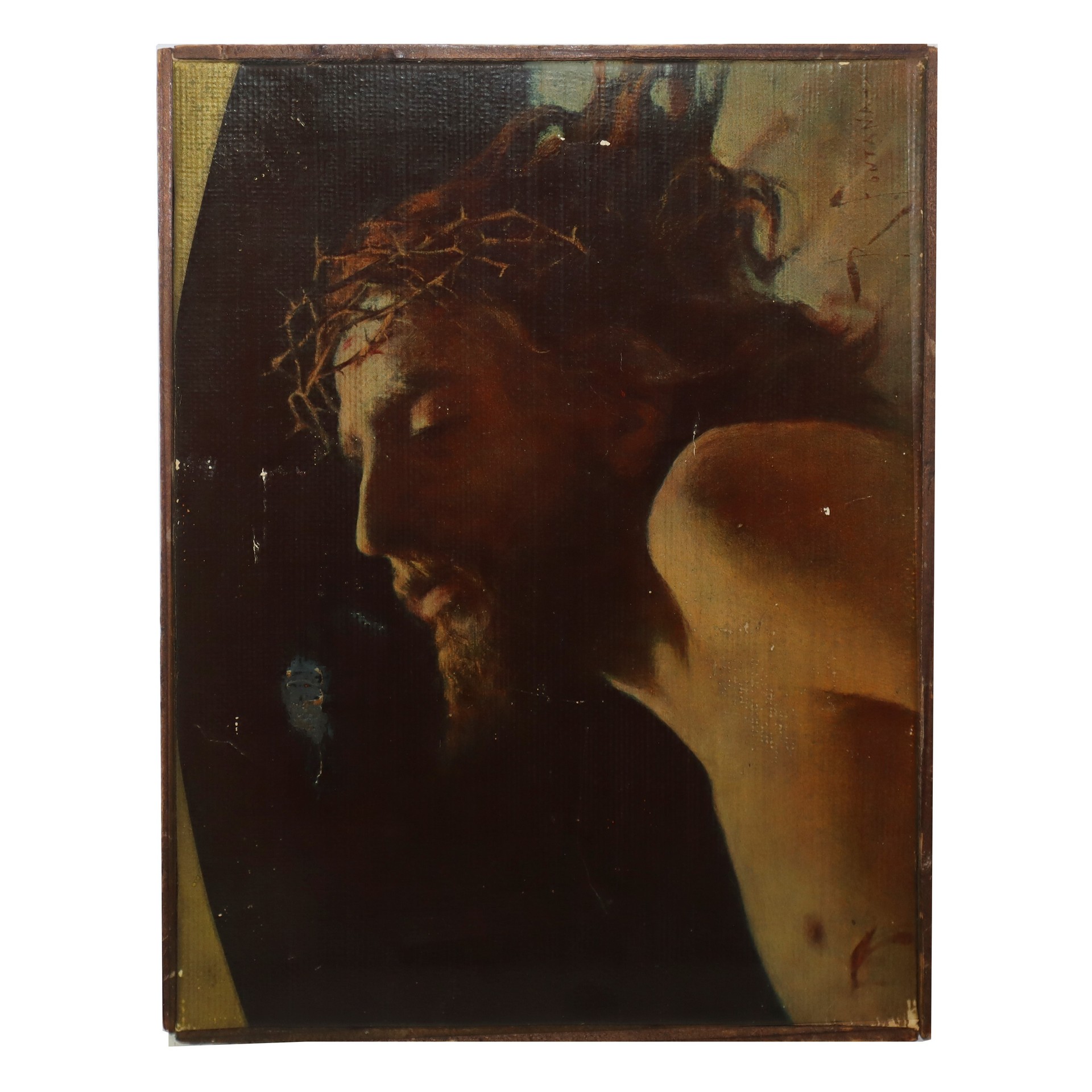 Roberto Fontana (Milano 1844-1907) - Volto di gesù con corona di spine H cm 29 x 22 Olio su tela Firmato R.Fontana in alto a destra, piccola caduta di colore fuori campo