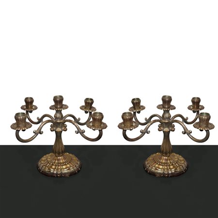 Coppia Candelieri, 20 Secolo g 1540 / h cm 28 Su base di legno.Su base di legno.