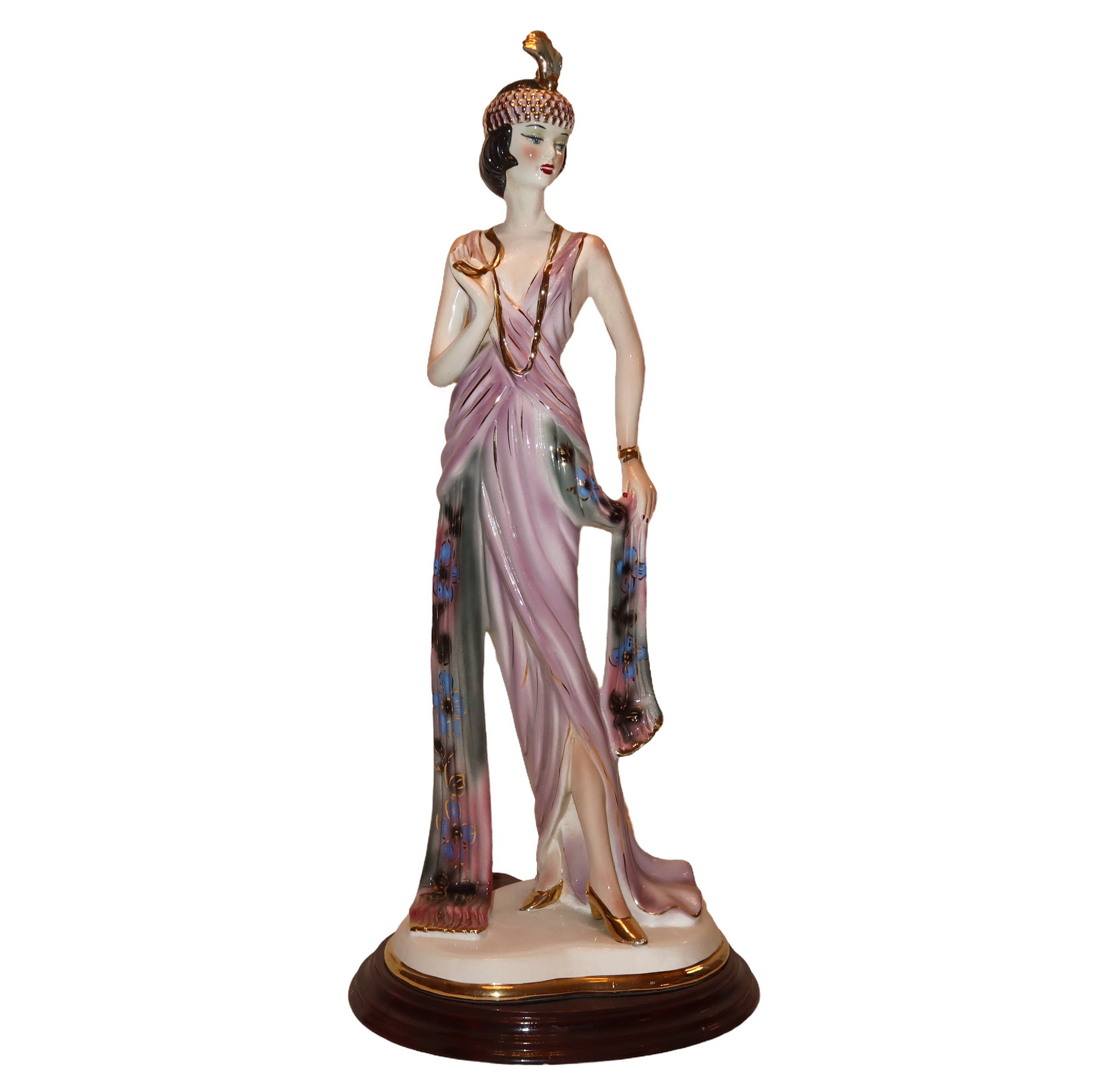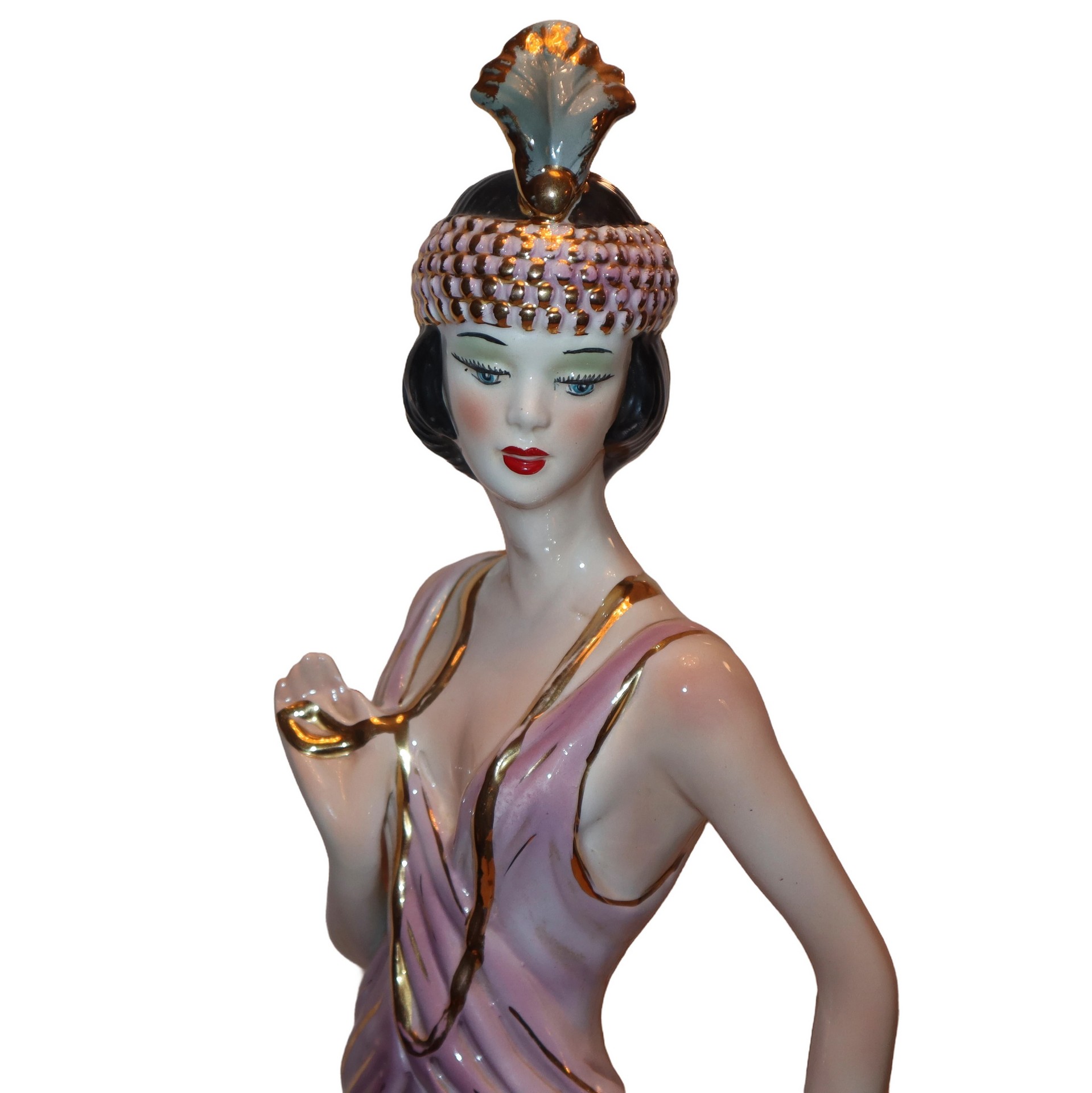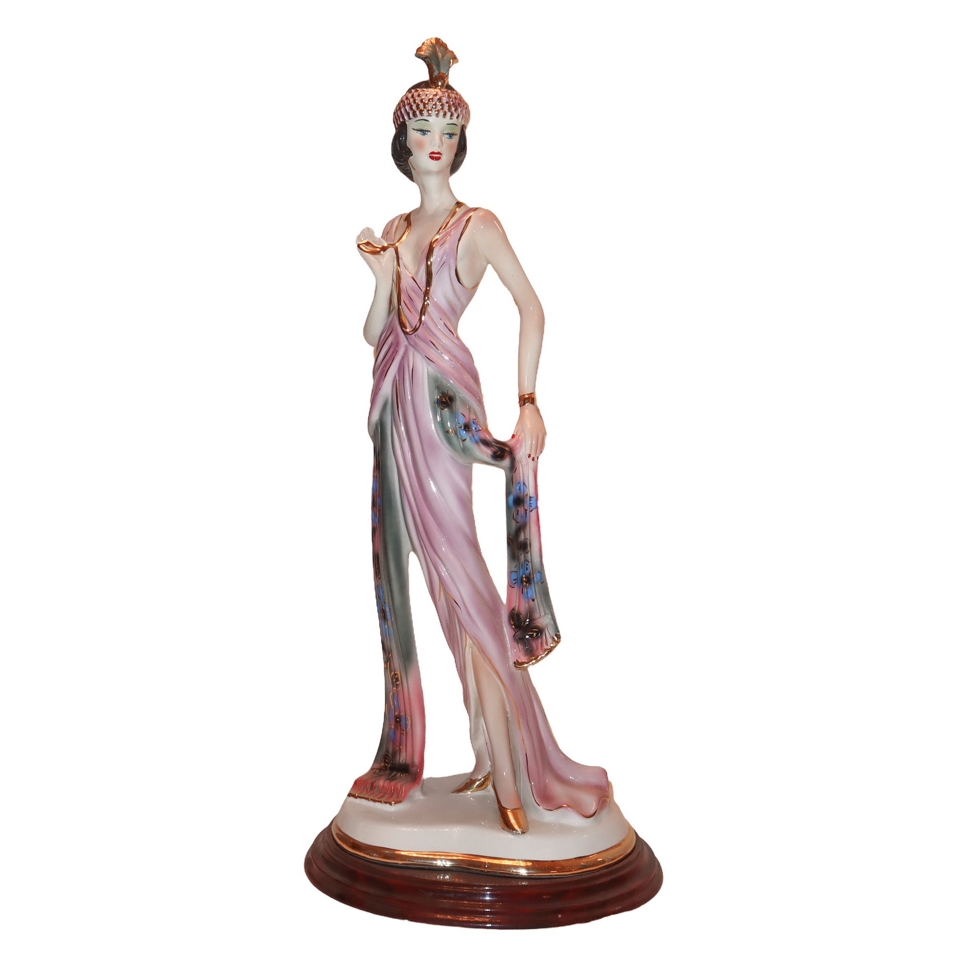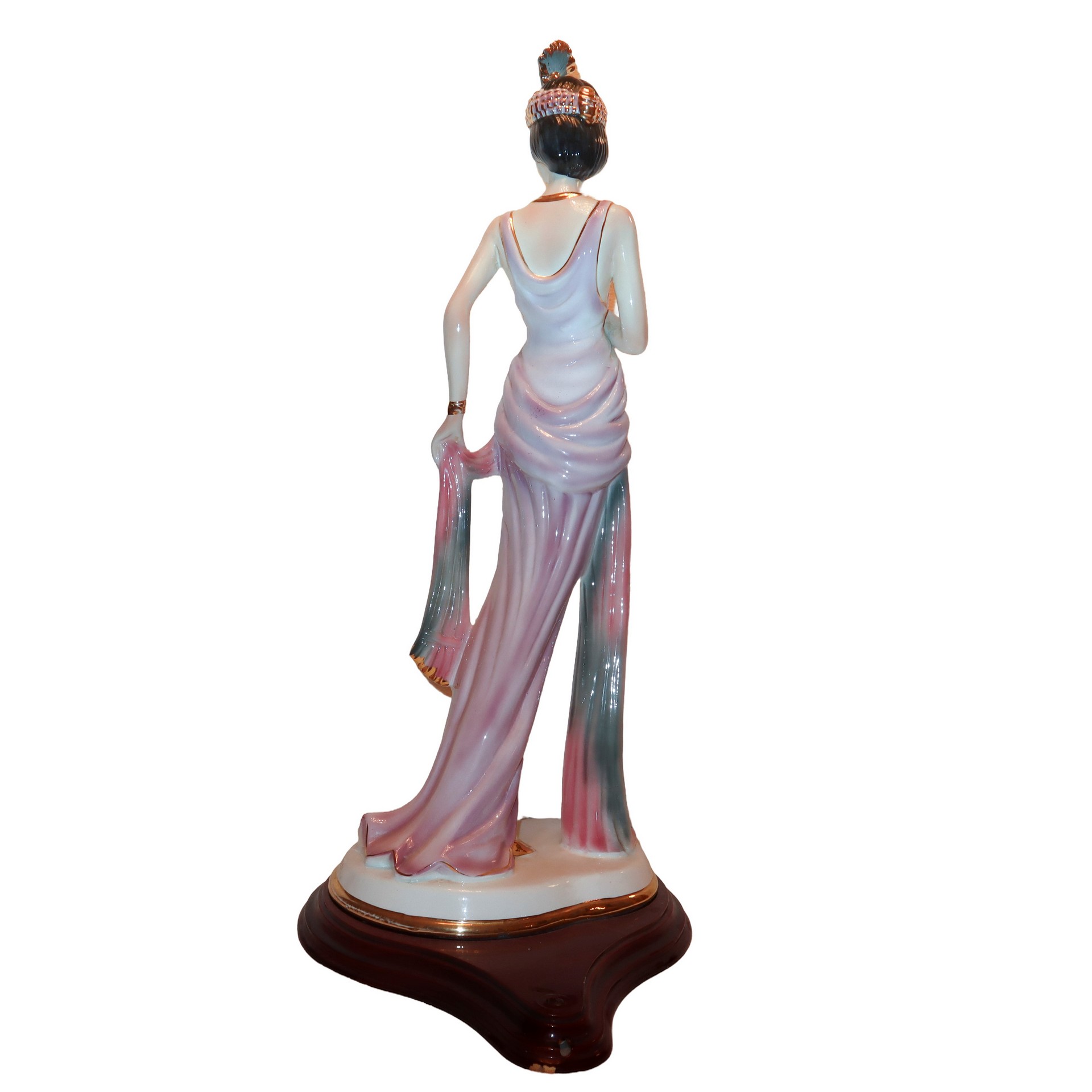 donna in abiti decò, scultura in porcellana, 20 Secolo H 66 cm