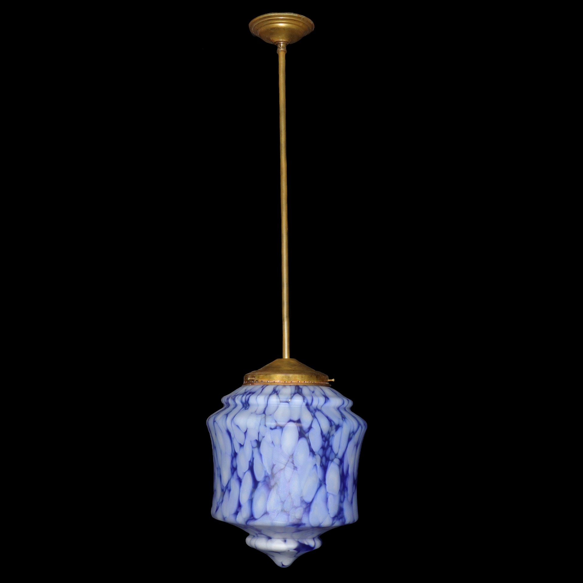 Lampadario monoluce in vetro di Murano marmorizzato blu e bianco, Early 20 Secolo Cm h 71x20 Stelo in metallo. ElettrificatoStelo in metallo. Elettrificato