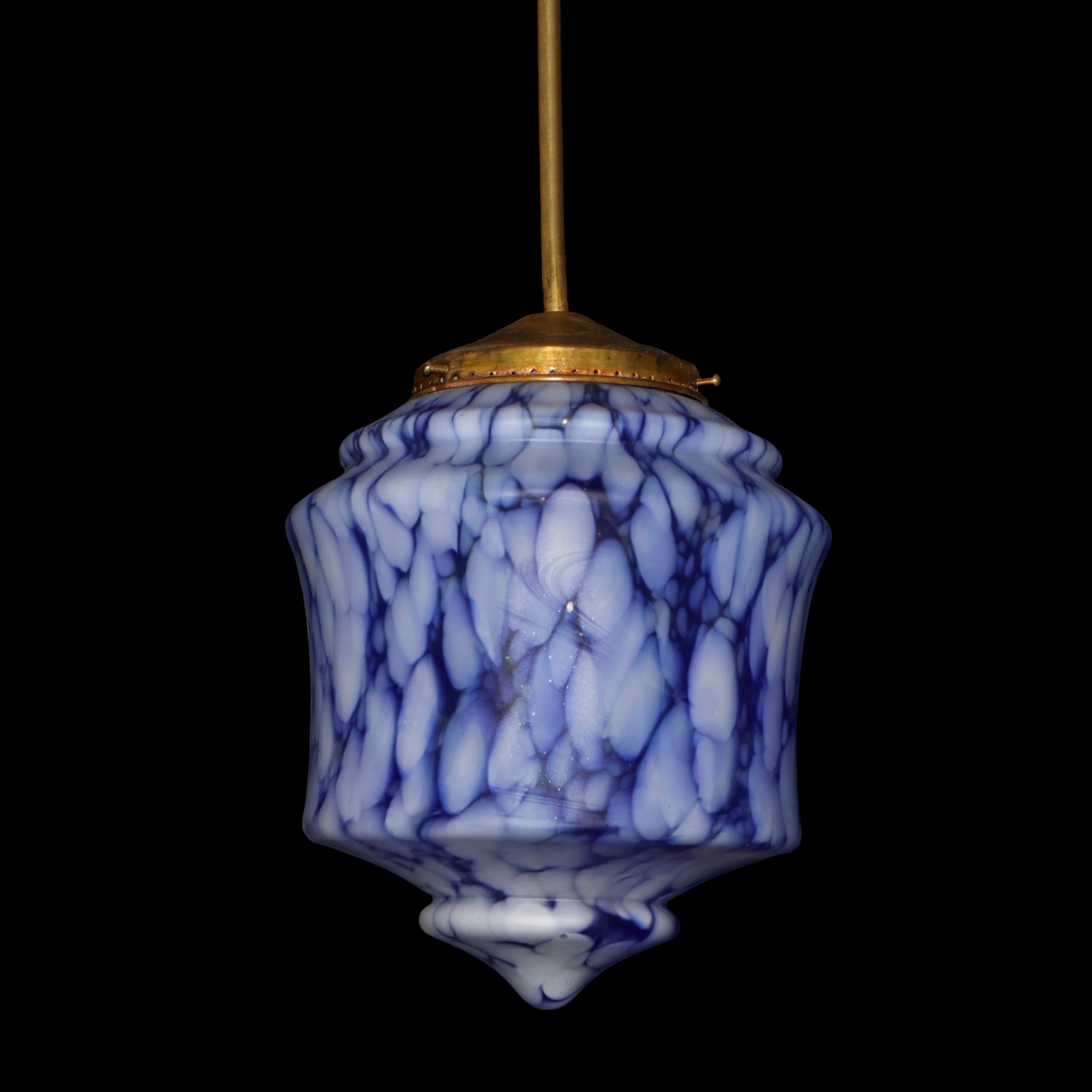 Lampadario monoluce in vetro di Murano marmorizzato blu e bianco, Early 20 century