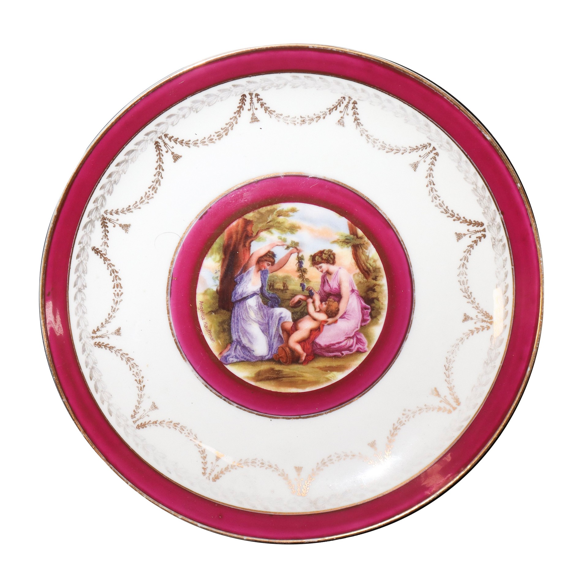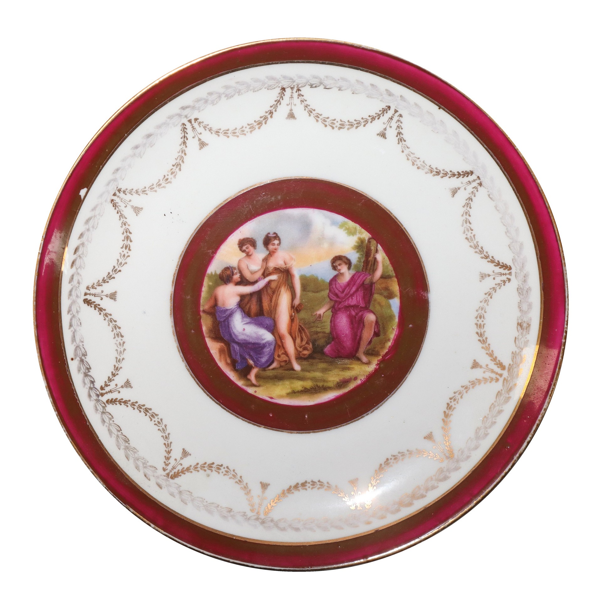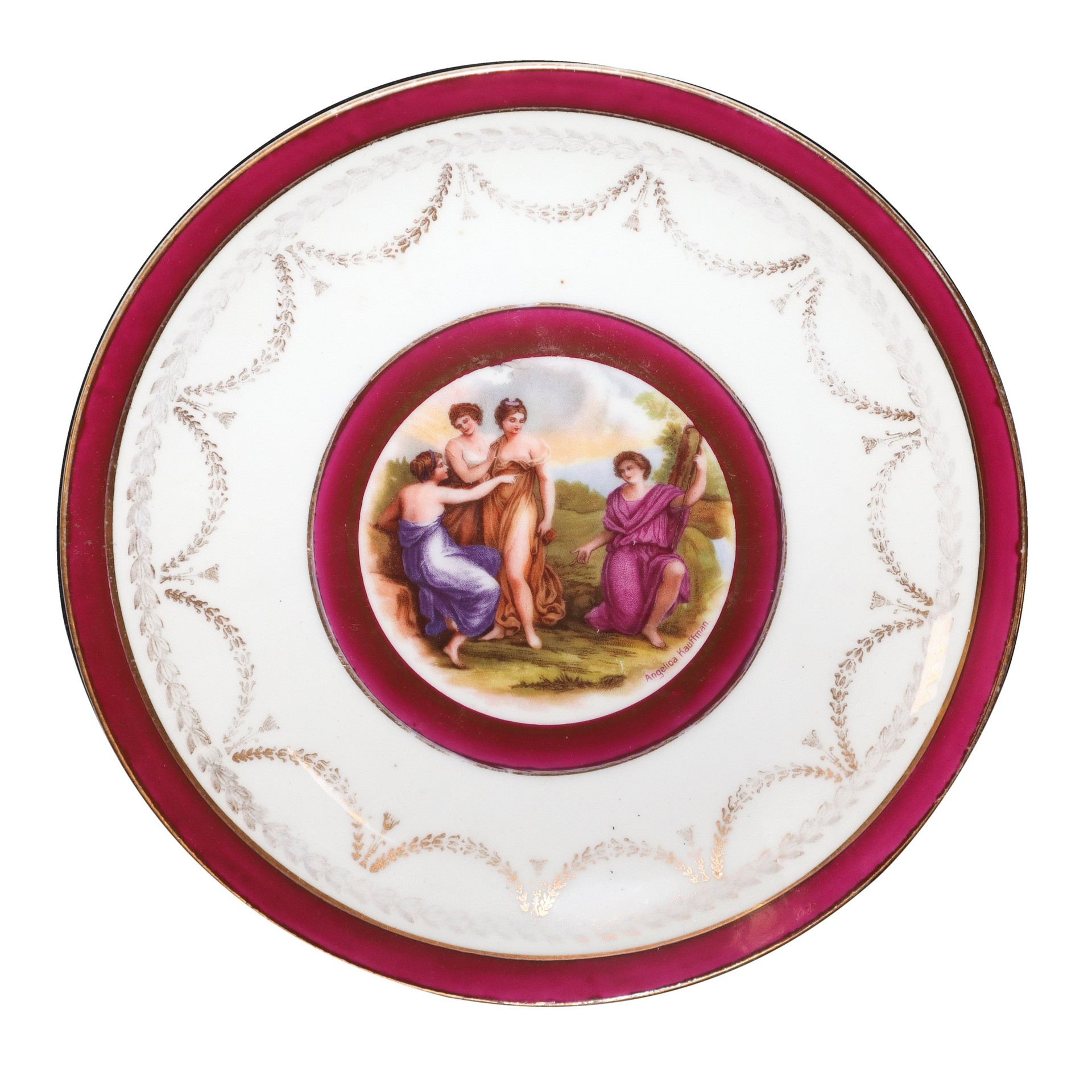 N.5 Piatti decorati a mano ed una ciotola con scene mitologiche e ghirlande dorate.