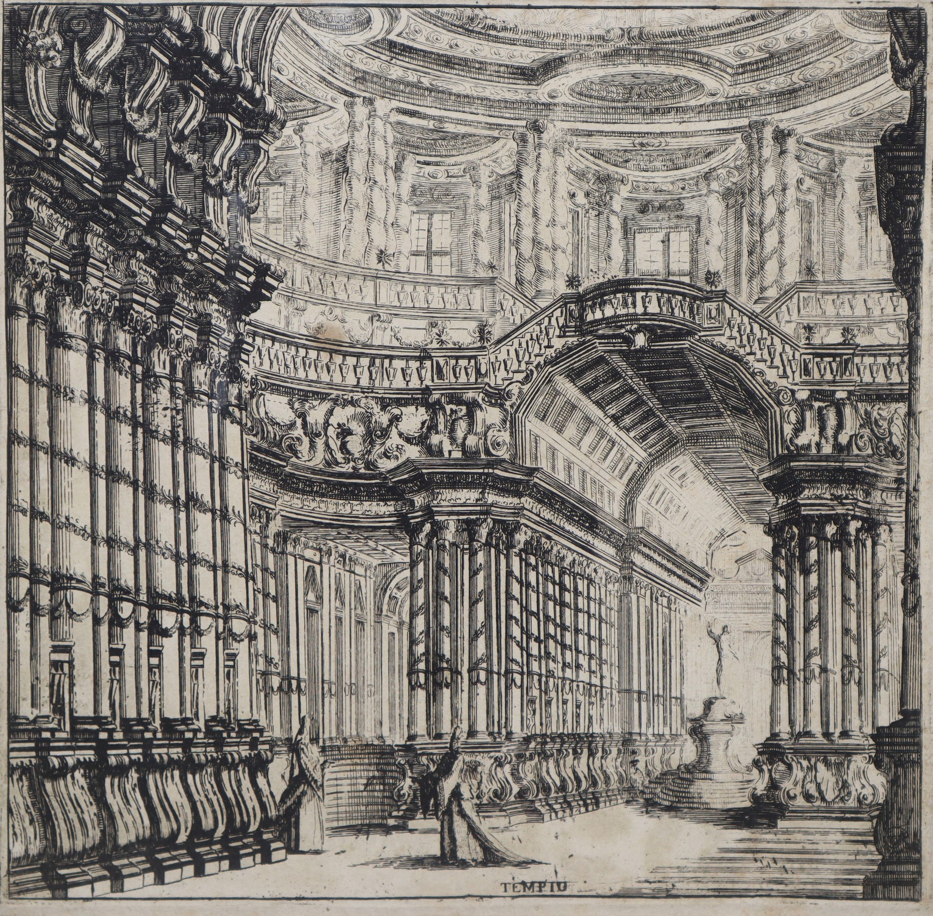 incisione raffigurante tempio H mm 269 x 269 / in cornice cm 48 x 47,5 Incisione all'acquaforte e bulino
