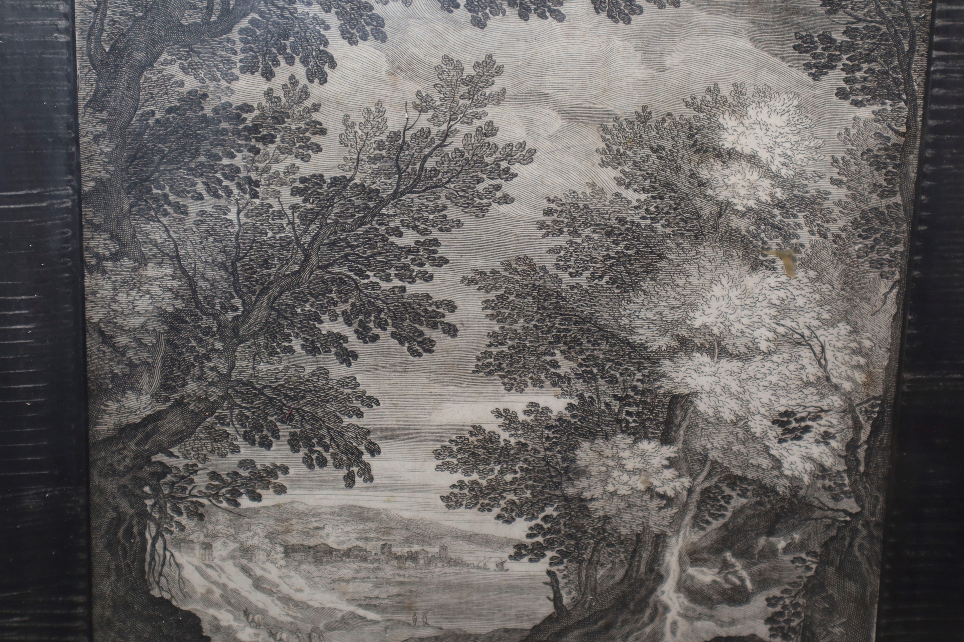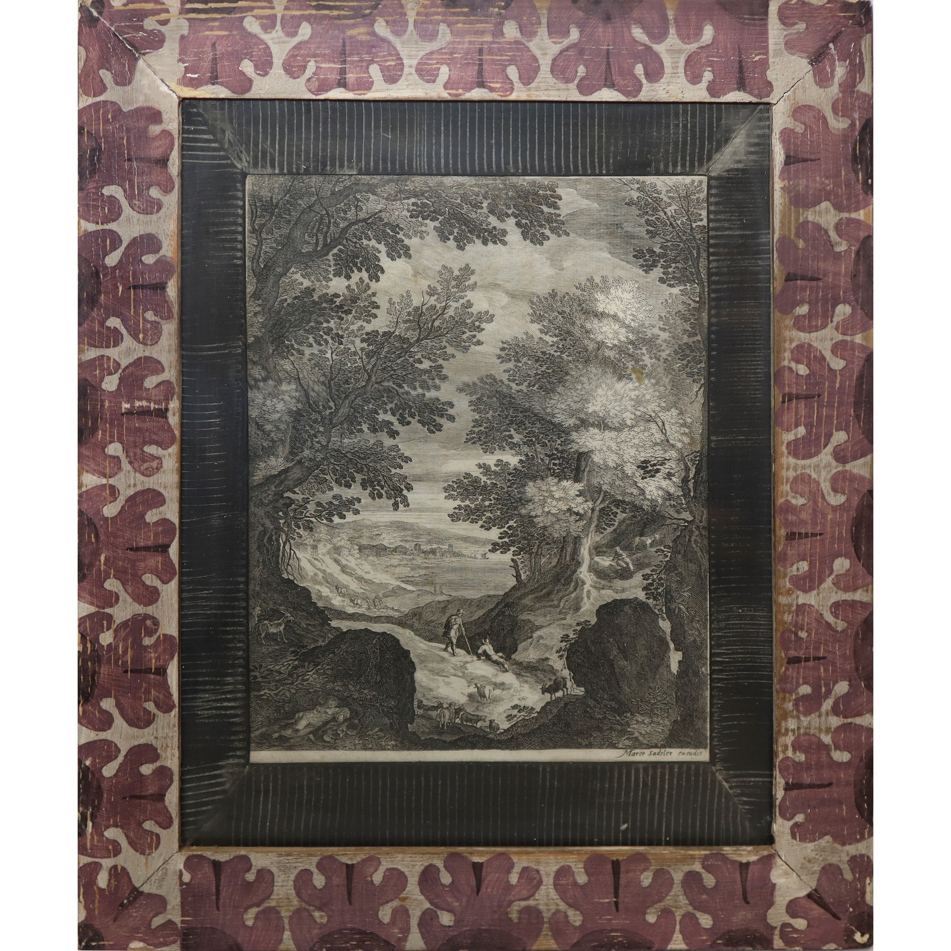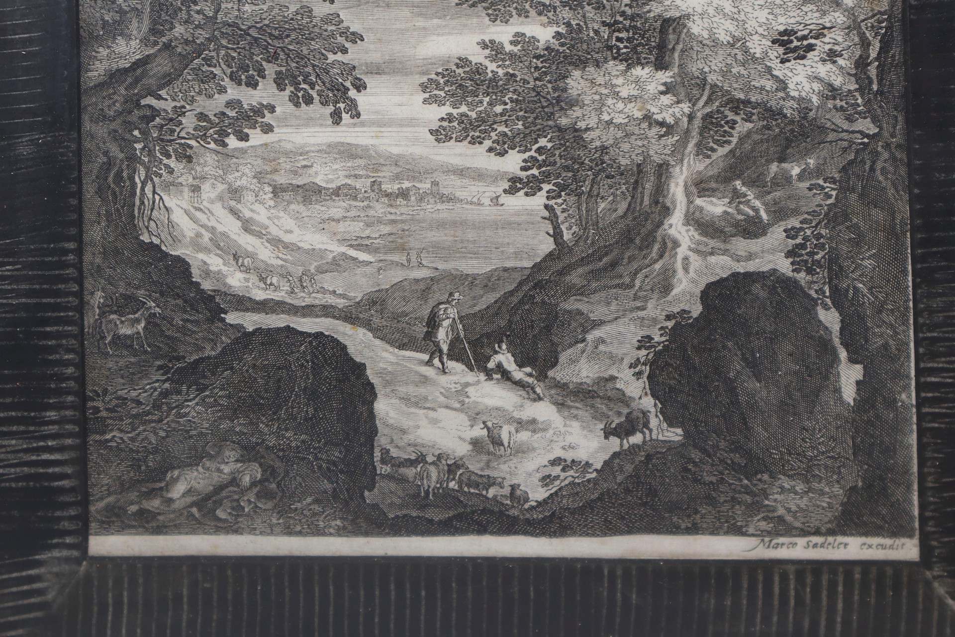 Marco Sadeler (Belgio 1614-1660) - Paesaggio marino con animali e personaggi Incisione all'acquaforte su carta vergata