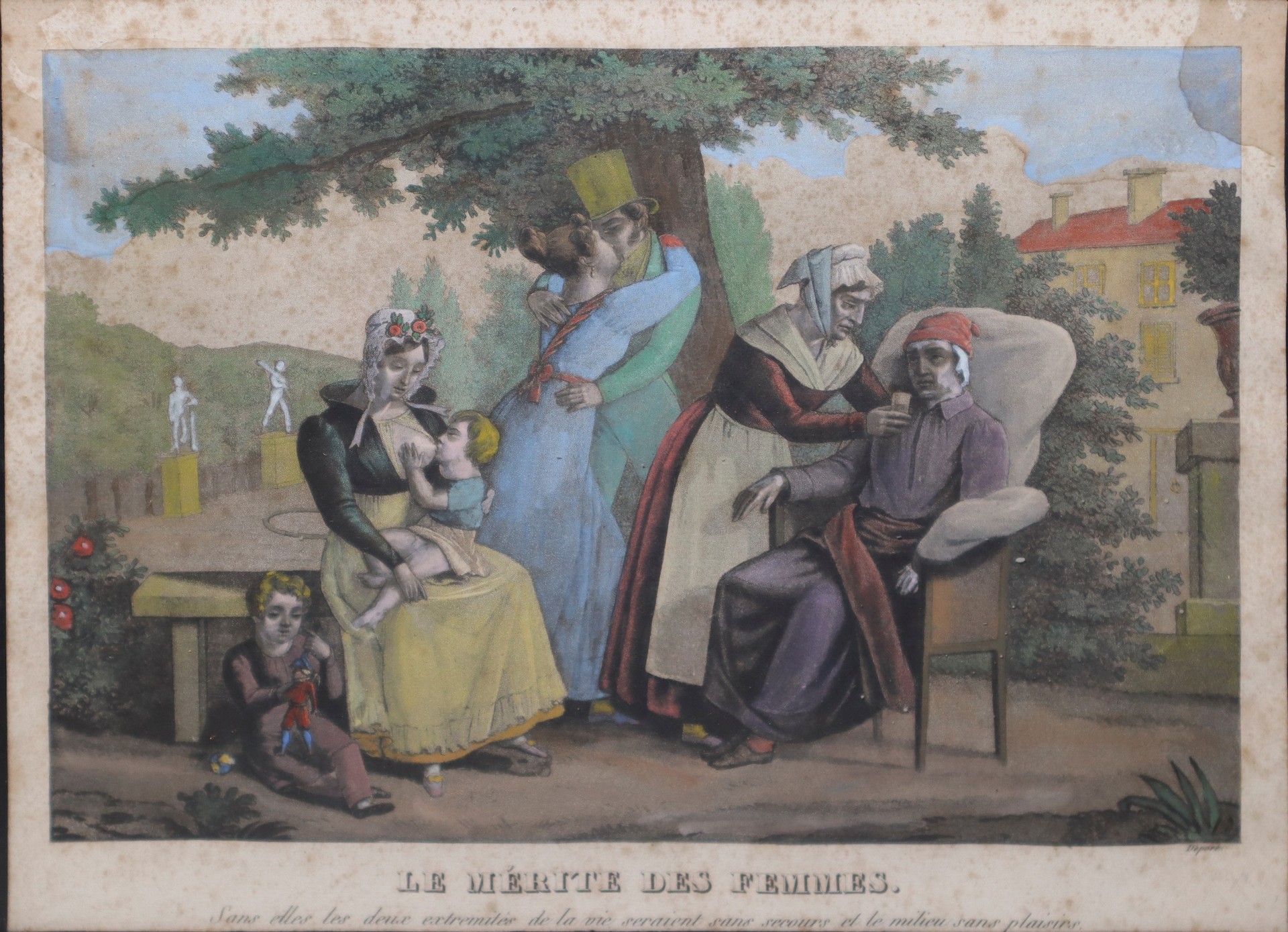 La prière du matin H mm 222 x 300 / in cornice 33,5 x 42 Le Mèrite des femmes H mm 217 x 285 / in cornice cm 33,5 x 42