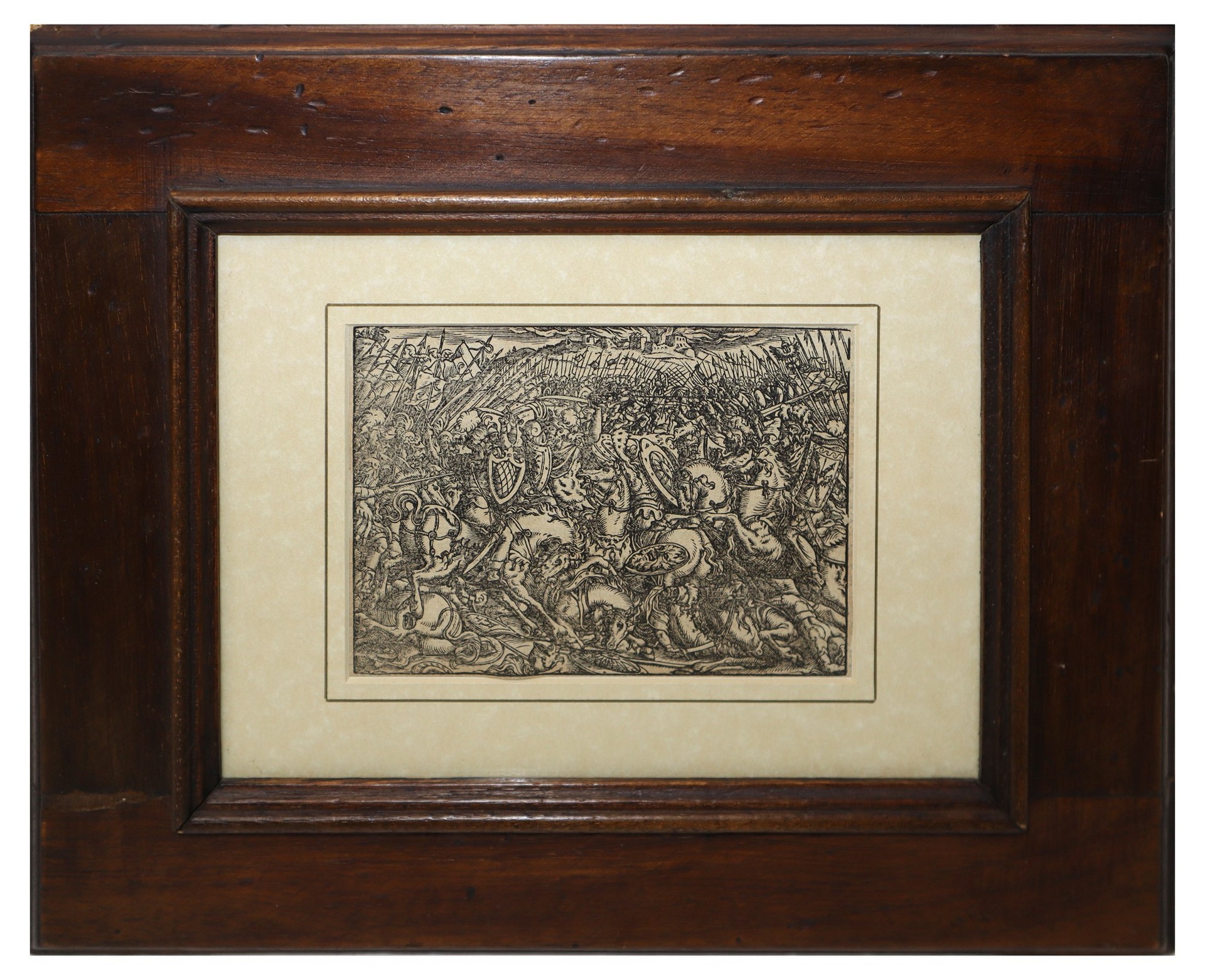 Jost Amman (Swiss 1539-1591) - Coppia di incisioni raffiguranti scene belliche, XVI secolo Incisione ad acquaforte