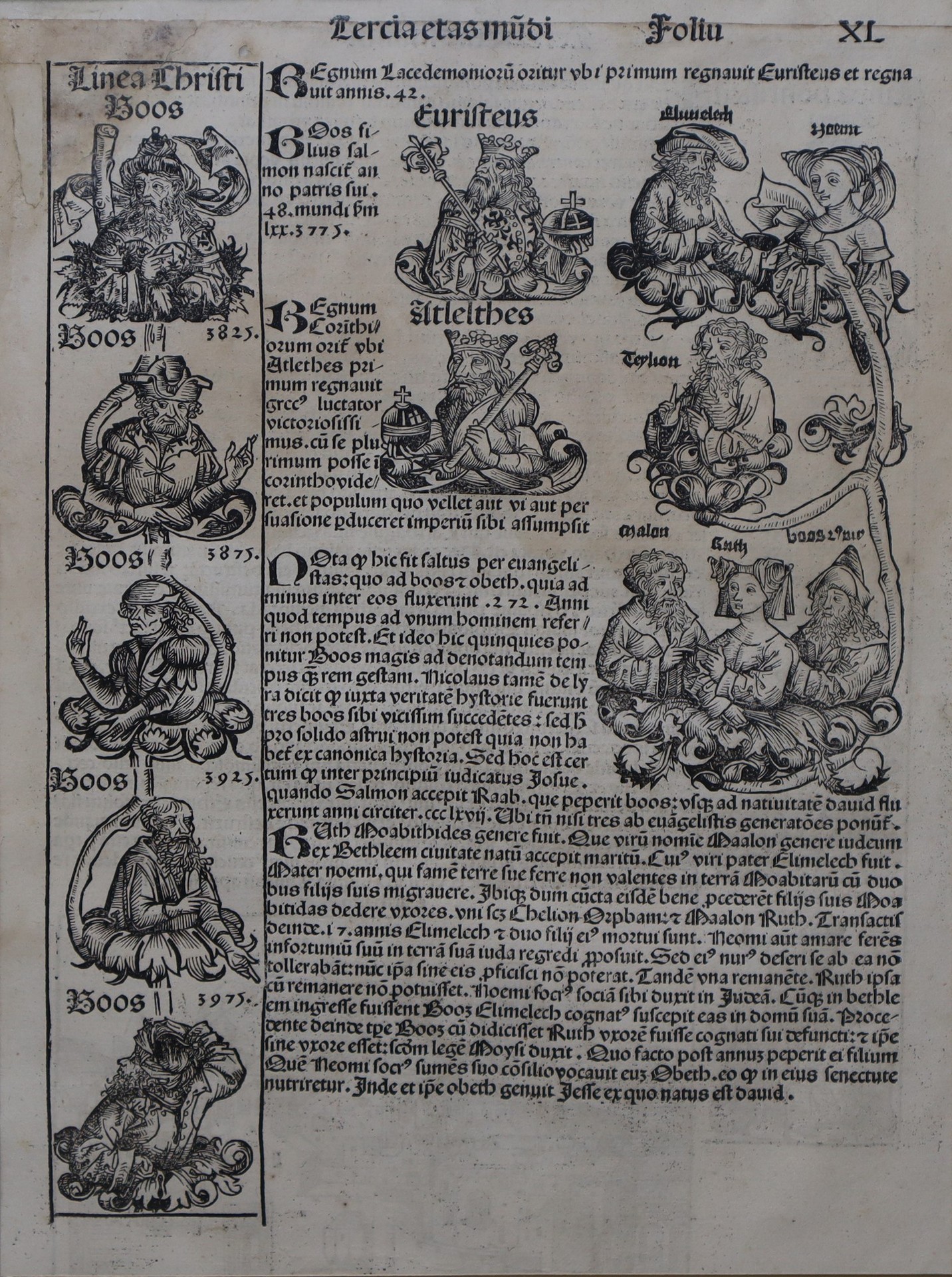 Hartmann Schedel (German 1440-1514) - Cronaca di Norimberga, XVI secolo cm 37 x cm 26, in cornice cm 74 x cm 64 Xilografia