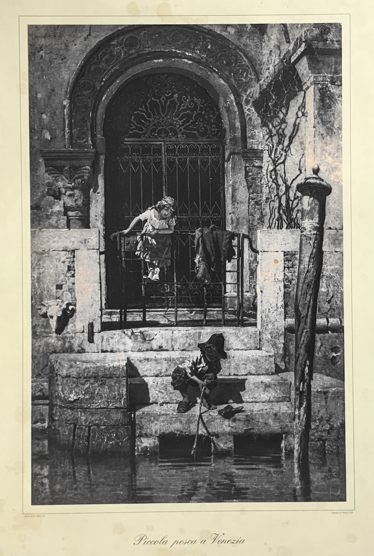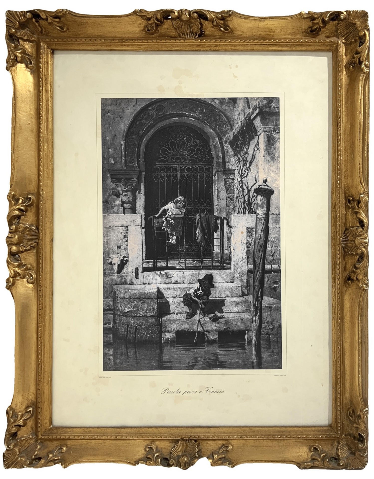 Piccola pesca a Venezia. In cornice cm 90x70 Incisione In cornice in legno dorato