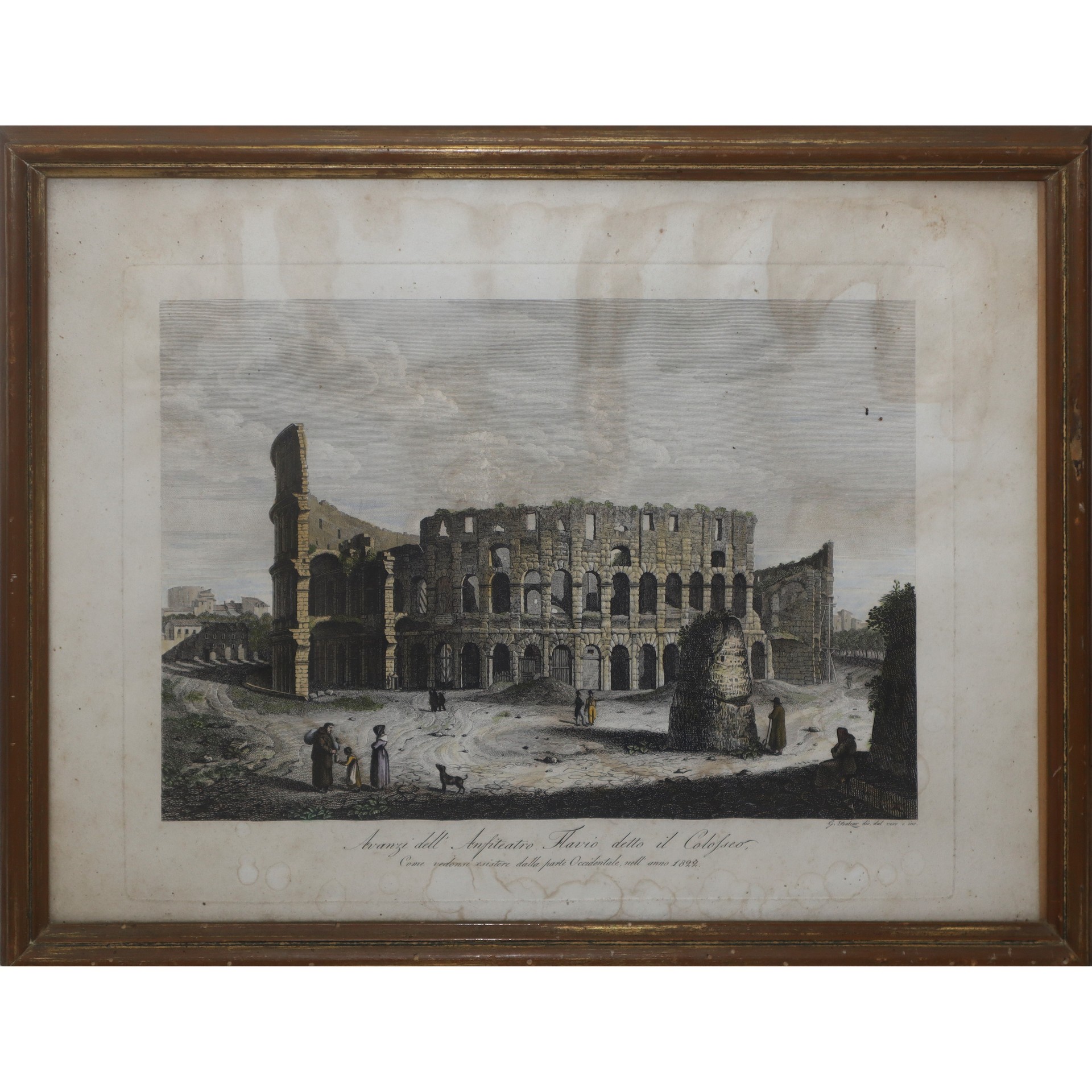 Balzar Giovanni Battista (Roma 1777-1831) - Avanzi dell'anfiteatro Flavio detto Colosseo nel 1822 In cornice cm 37 x 47 Incisione all'acquaforte acquerellata
