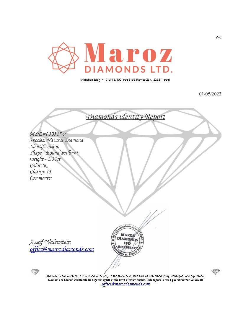 DIAMANTE 2,36 CT K - I3 - TAGLIO BRILLANTE - CERTIFICATO ID - C30517-9