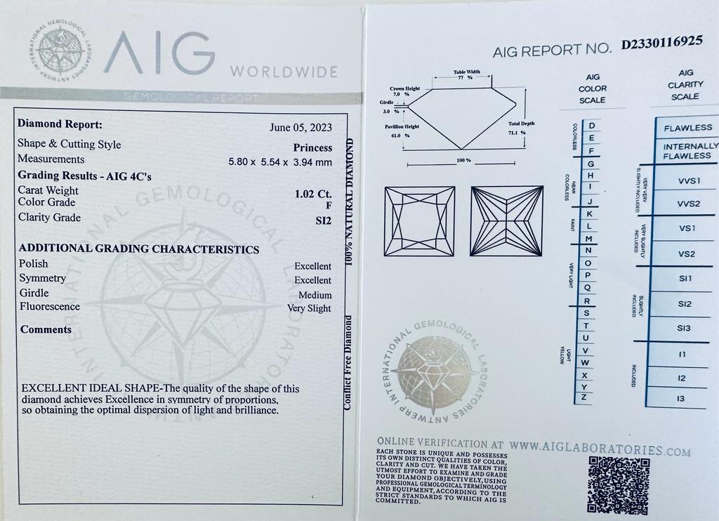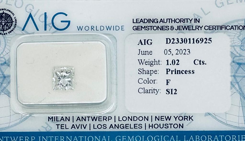 DIAMANTE 1,02 CT F - SI2 - TAGLIO PRINCESS - CERTIFICATO AIG - C30528
