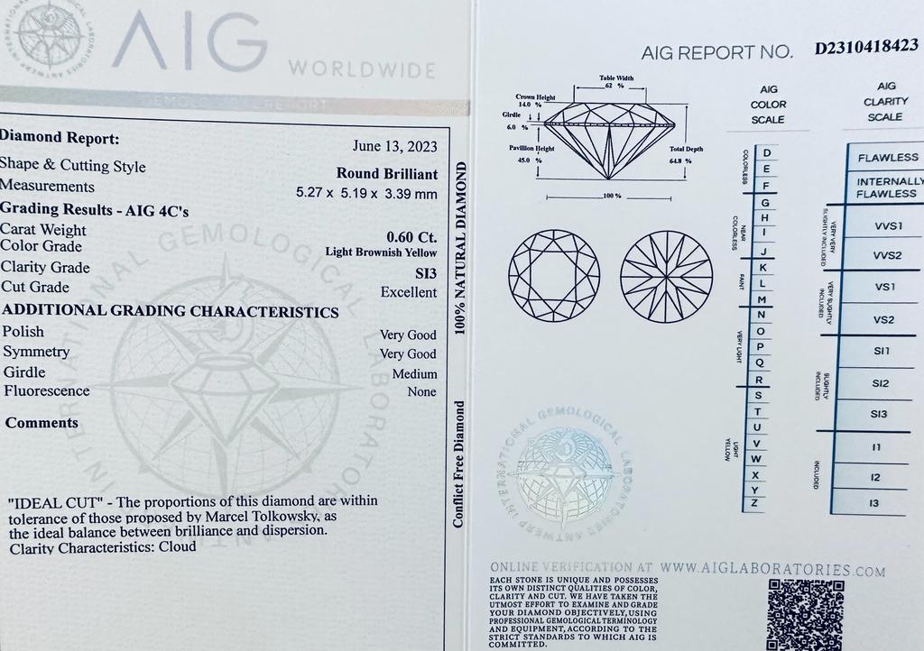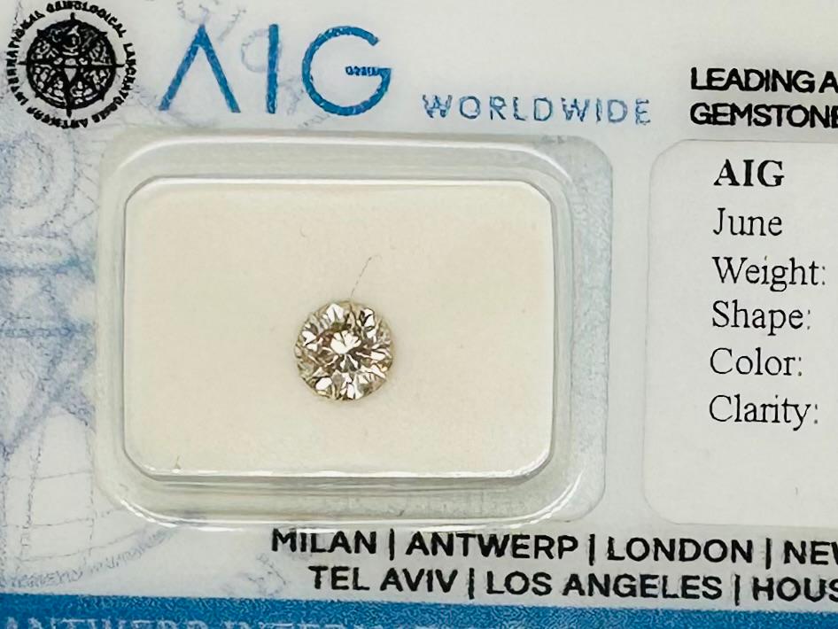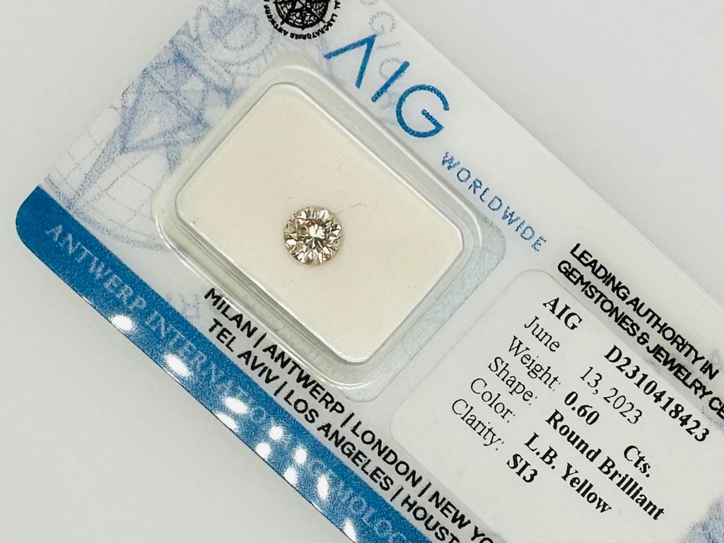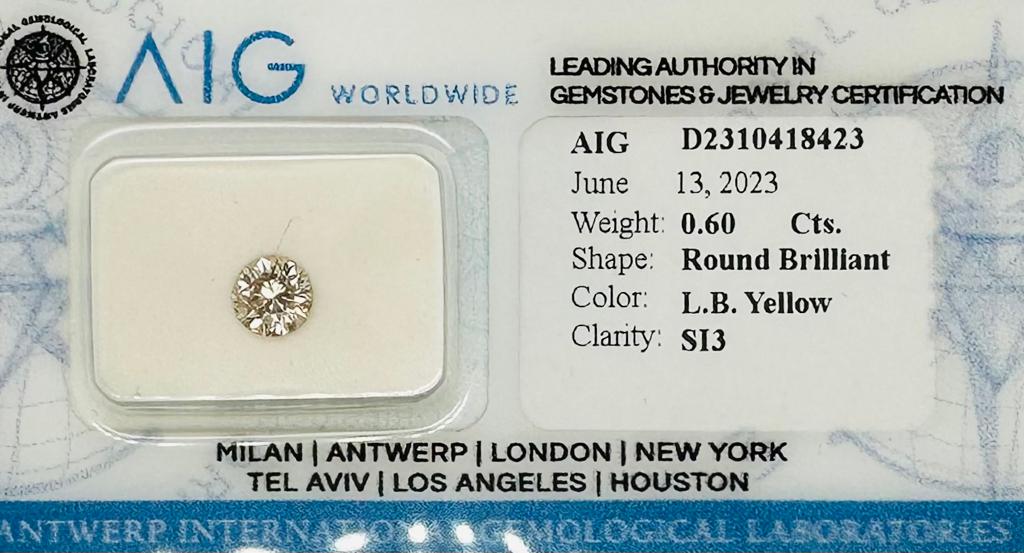 DIAMANTE 0,6 CT CHIARO MARRONCINO GIALLO - SI3 - TAGLIO BRILLANTE - CERTIFICATO AIG - C30606-3