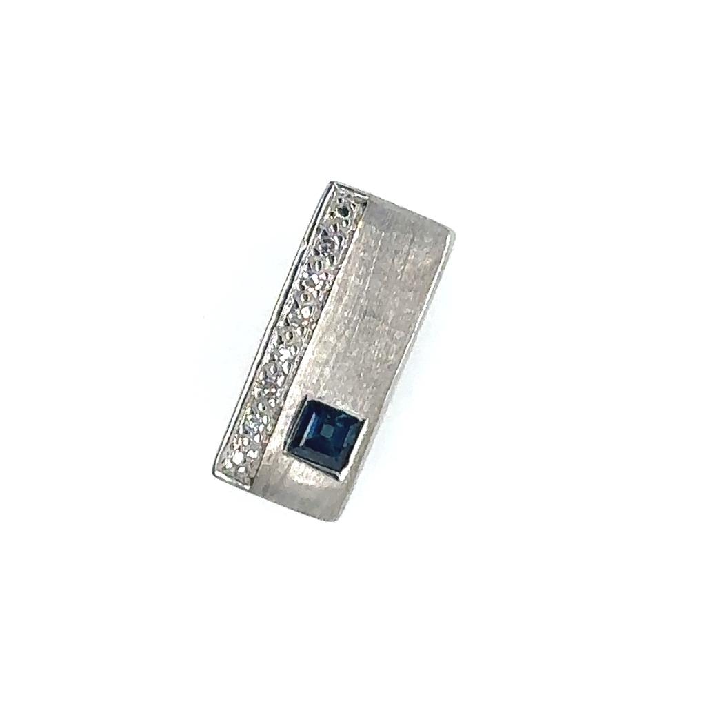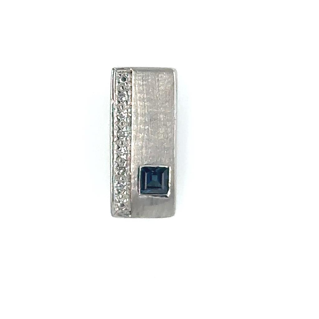 CIONDOLO IN ORO BIANCO 14K 2.30 GR CON ZAFFIRO E DIAMANTI PER 0.04 CT...