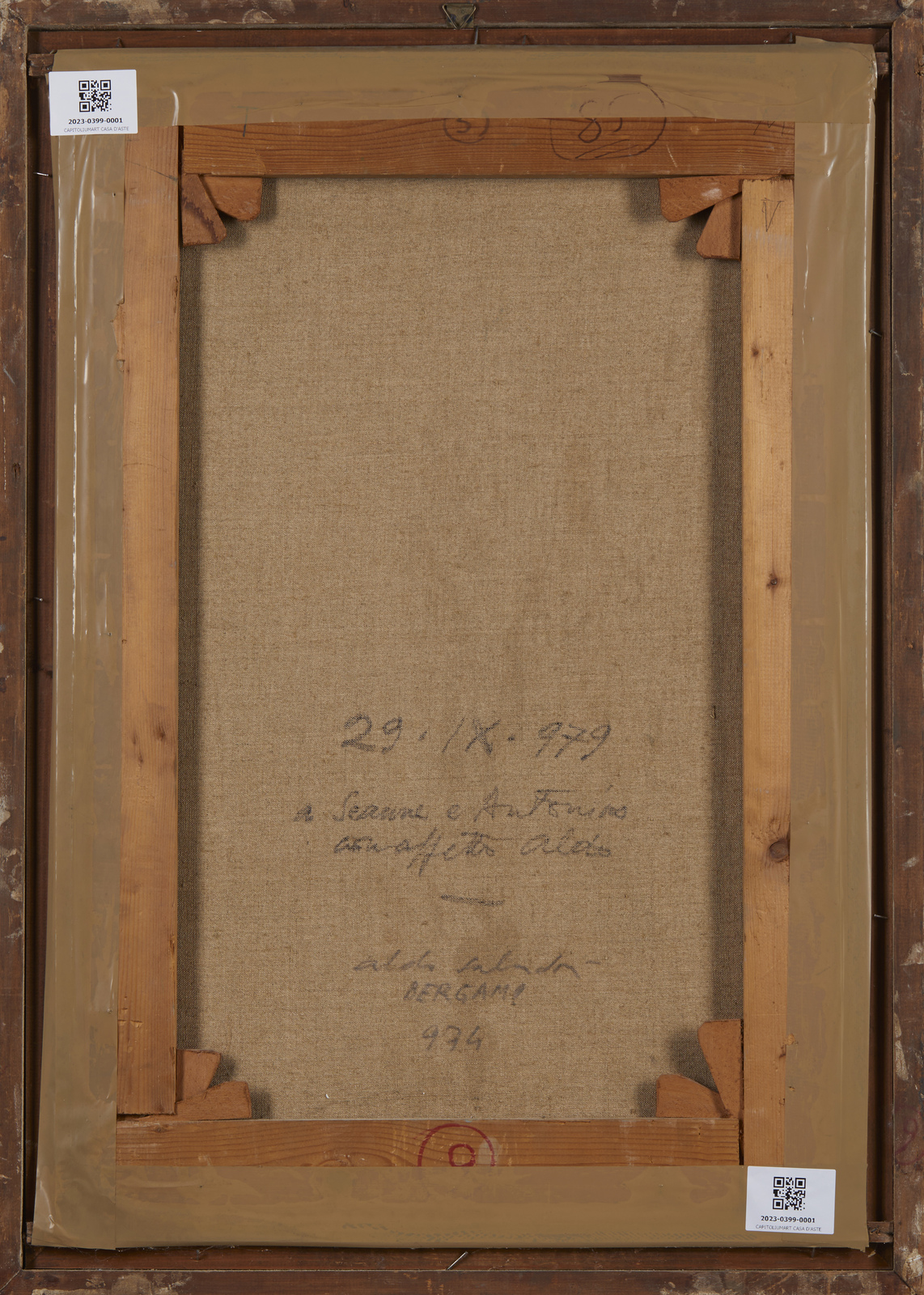 SALVADORI ALDO (1905 - 2002) Senza titolo. 1974. Olio su tela . Cm 45,00 x 67,00. Firma in basso a destra. Al retro dedica, firma e anno. Cornice presente
