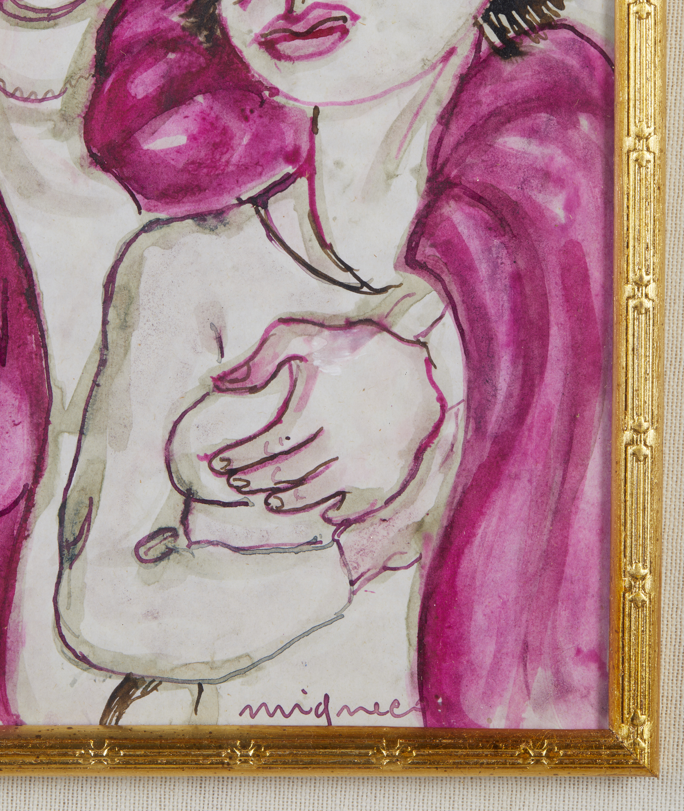 MIGNECO GIUSEPPE (1908 - 1997) Innamorati. China su carta su tela. Cm 20,00 x 29,00. Firma in basso a destra. Autentica dell'artista su fotografia con timbro Galleria d'Arte Filippin, Milano. Provenienza: Galleria d'arte Filippin, Milano; Private Collection, Rome. Publication: Galleria d'arte Filippin, Milano, n. 95, p. 9. Cornice presente