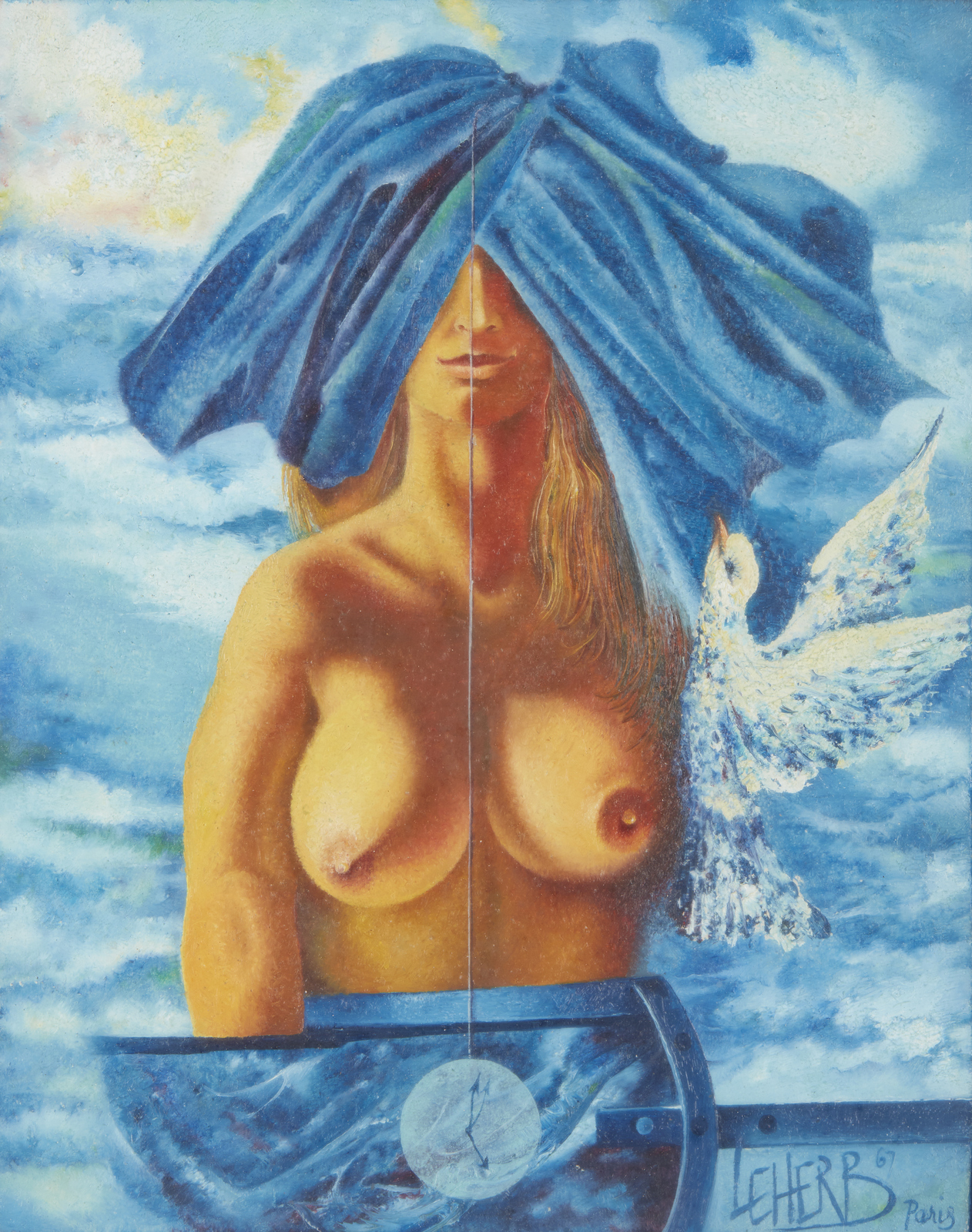 LEHERB HELMUT (1933 - 1997) Esprit du temps. 1967. Olio su tavola. Cm 18,00 x 24,00. Firma e anno in basso a destra. Al retro firma, dedica e cartiglio descrittivo Galleria d'arte moderna Viotti, Torino. Provenienza: Galleria Viotti, Torino; Collezione Valli,Torino. Esposizioni: Leherb, Galleria Viotti, Torino (8 - 21 Marzo 1969). Cornice presente