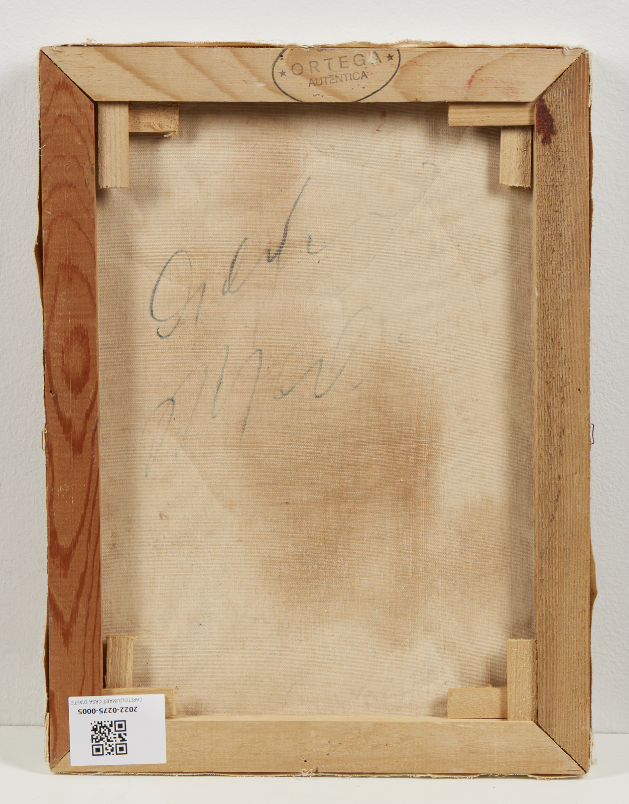 ORTEGA (Alfredo Merlini) Senza titolo. . Olio su tela . Cm 40,00 x 30,00. Firma al retro e timbro dell'artista. Difetti. . Cornice presente