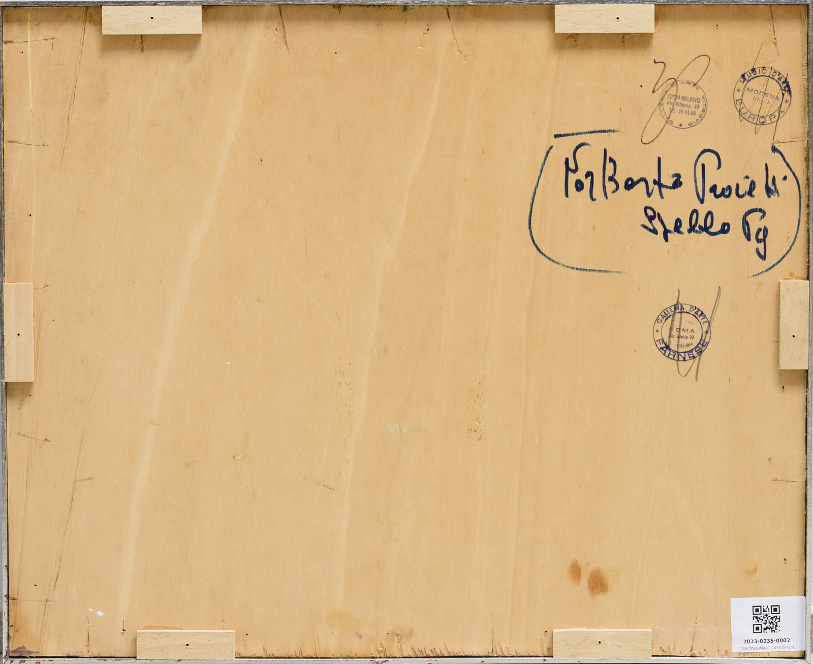 PROIETTI NORBERTO (1927 - 2009) Senza titolo. 1971. Olio su tavola. Cm 57,00 x 47,00. Firma e anno in basso a destra. Al retro firma, timbro della Galleria Farnese, Roma; timbro della Galleria d'arte Vitruvio, Milano e timbro Studio d'arte Europa, Modena.