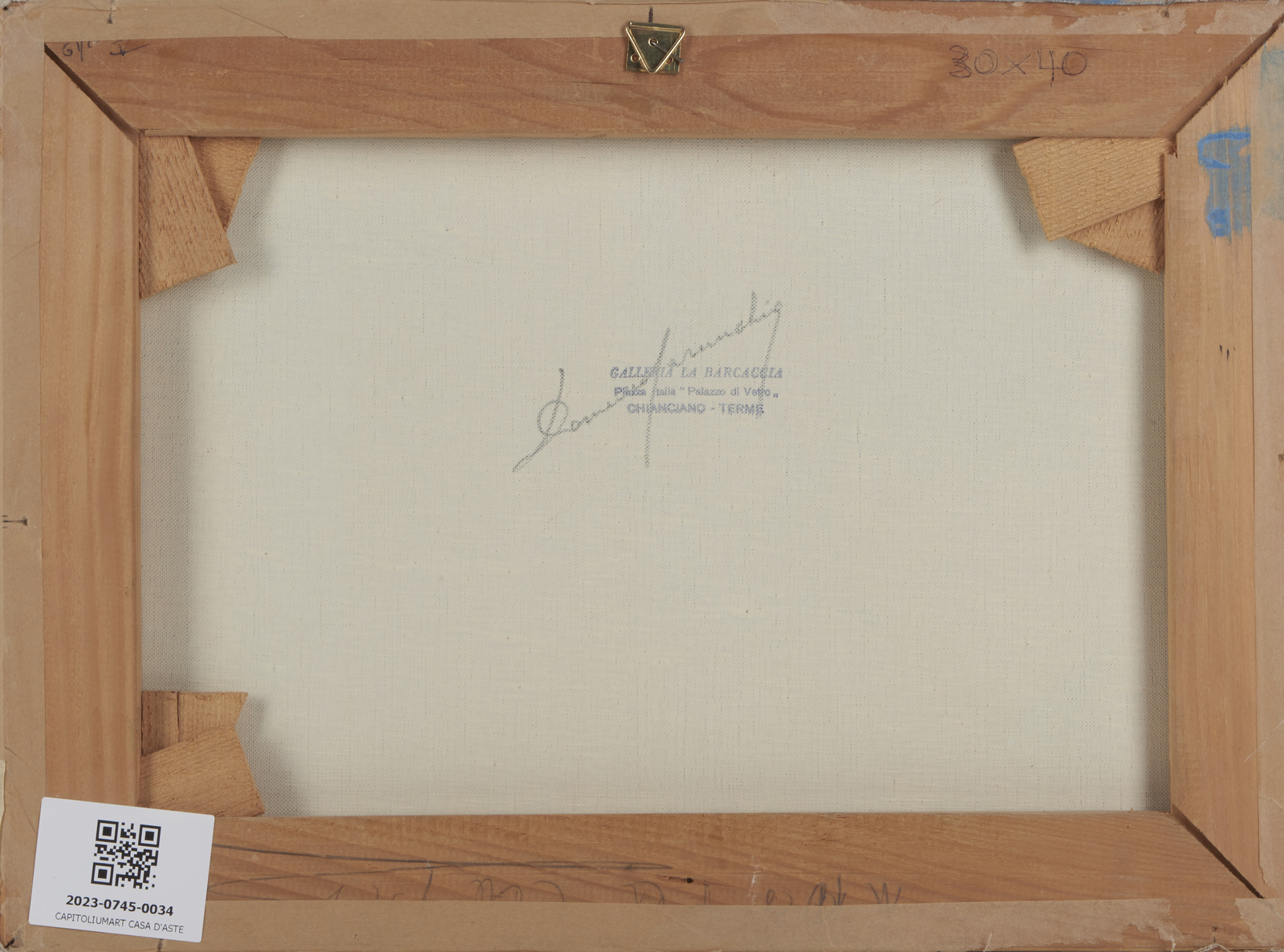 SALVATORE ANNA (1923 - 1978) La coppia. Tecnica mista su tela. Cm 40,00 x 30,00. Firma in basso al centro. Al retro timbro Galleria La Barcaccia, Chianciano Terme.