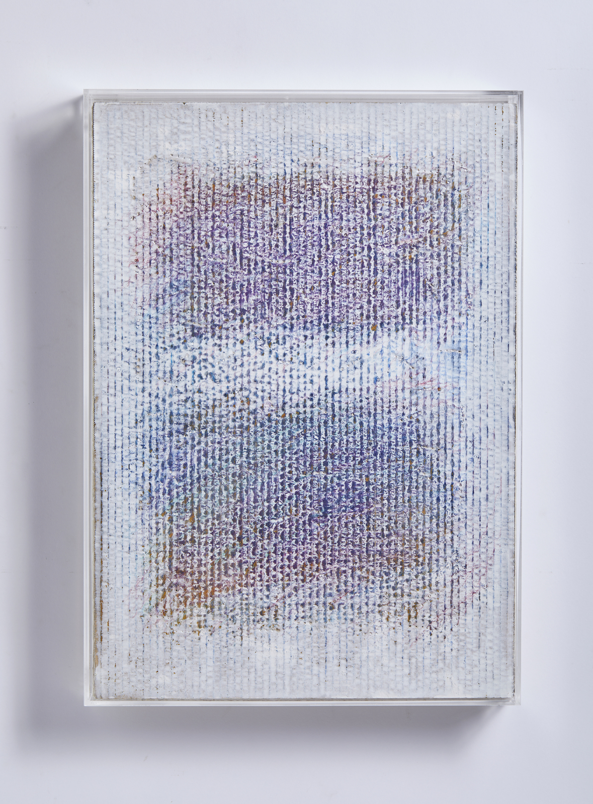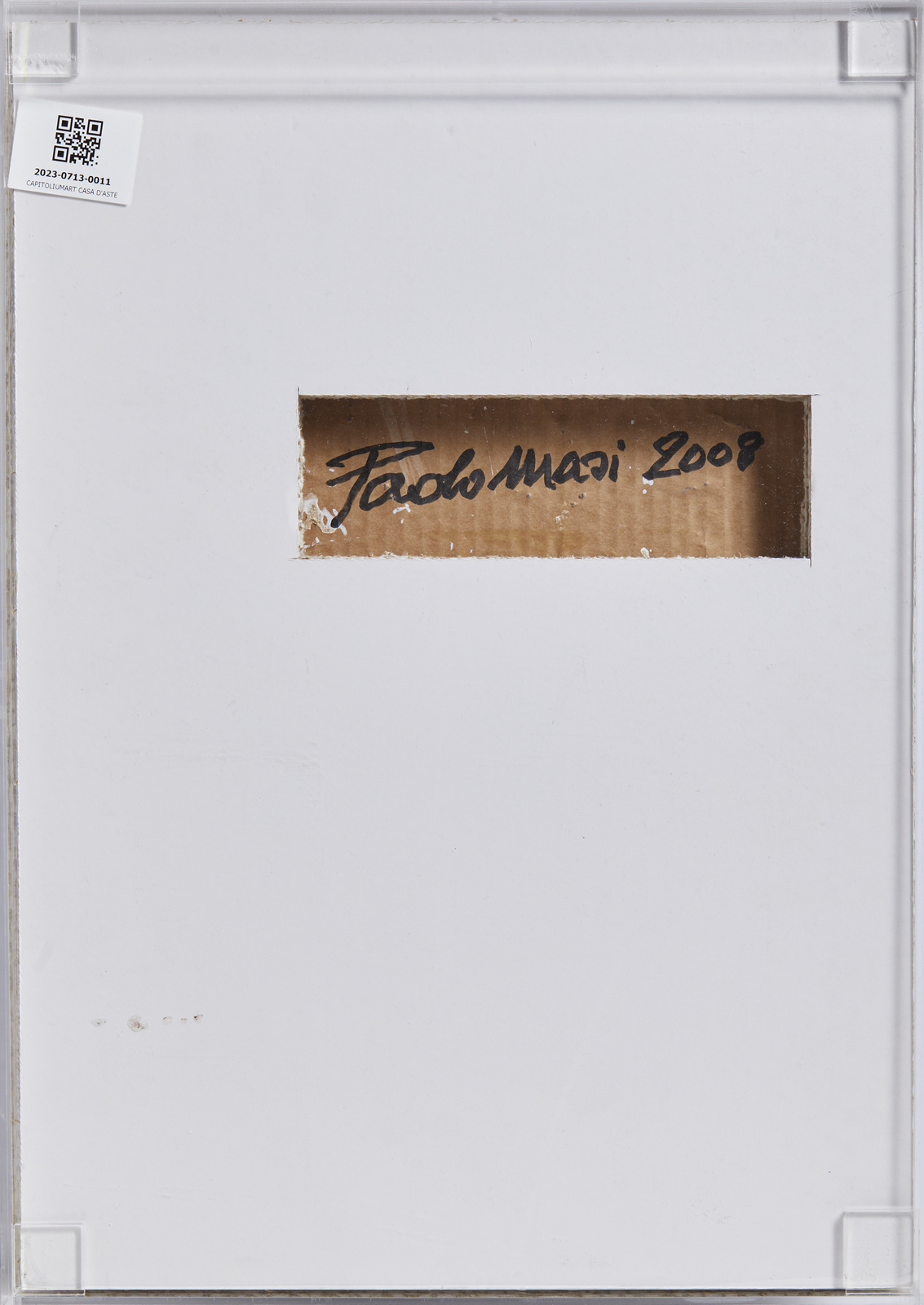 MASI PAOLO (n. 1933) Senza titolo. 2008. Tecnica mista su cartone. Cm 39,00 x 55,00. Al retro firma e anno. Autentica dell'artista su fotografia. Entro teca in plexiglass. Cornice presente