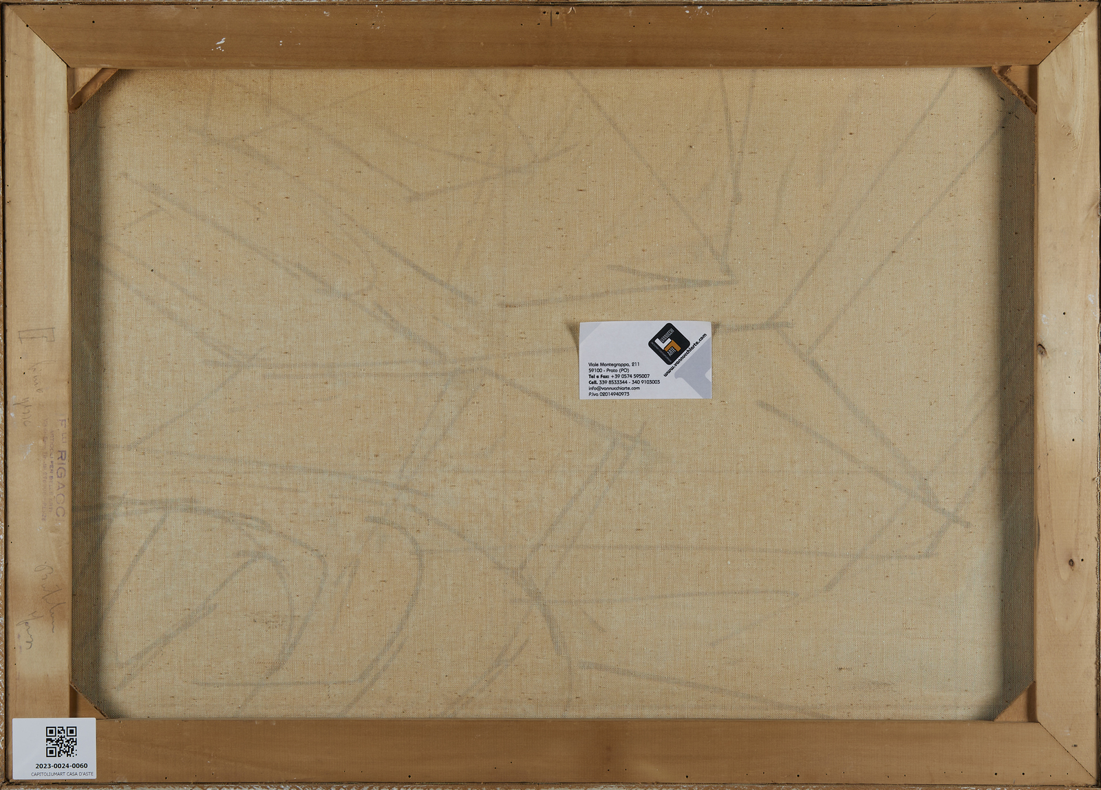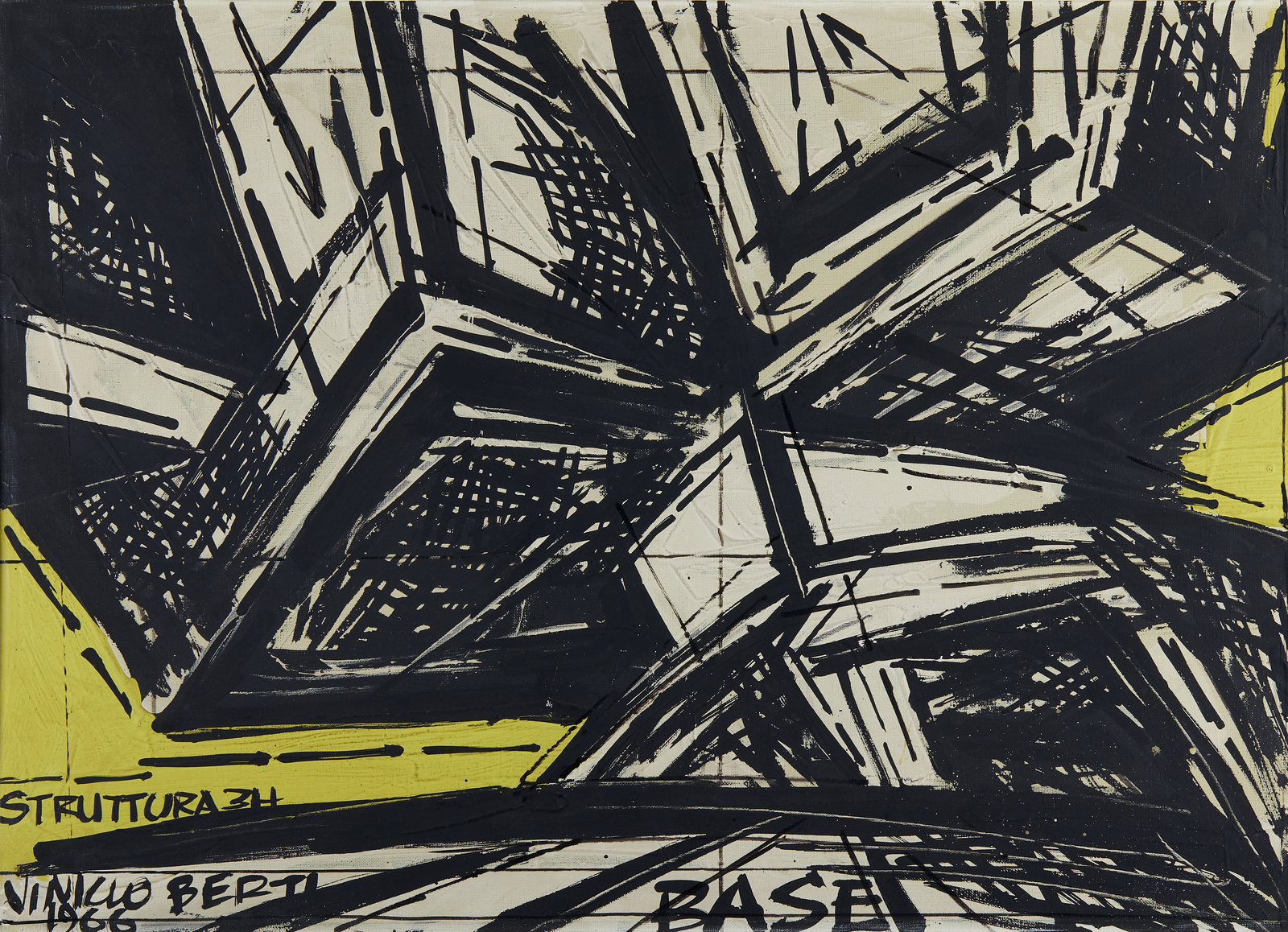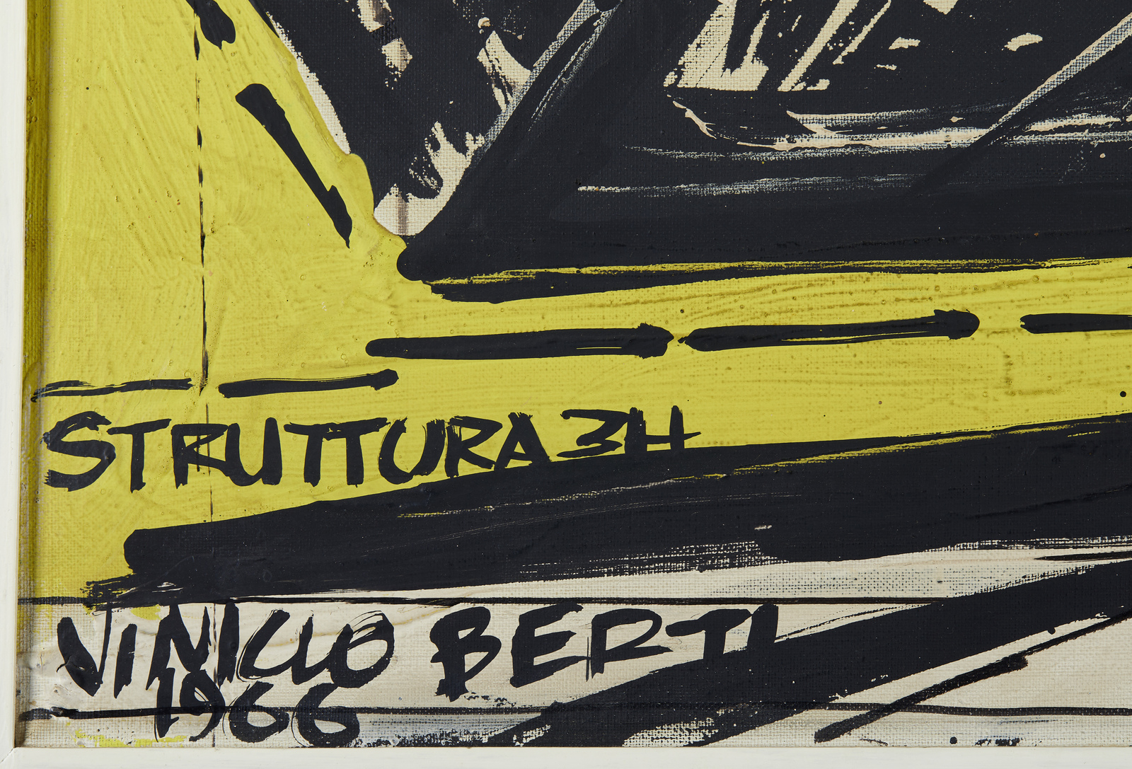 BERTI VINICIO (1921 - 1991) Struttura 3H. . 1966. Olio su tela . Cm 70,00 x 50,00. Firma, titolo e anno in basso a sinistra. Opera archiviata presso l'Archivio Vinicio Berti, Bologna, come da documentazione fotografica allegata all'opera riportante il relativo numero d'inventario. Cornice presente
