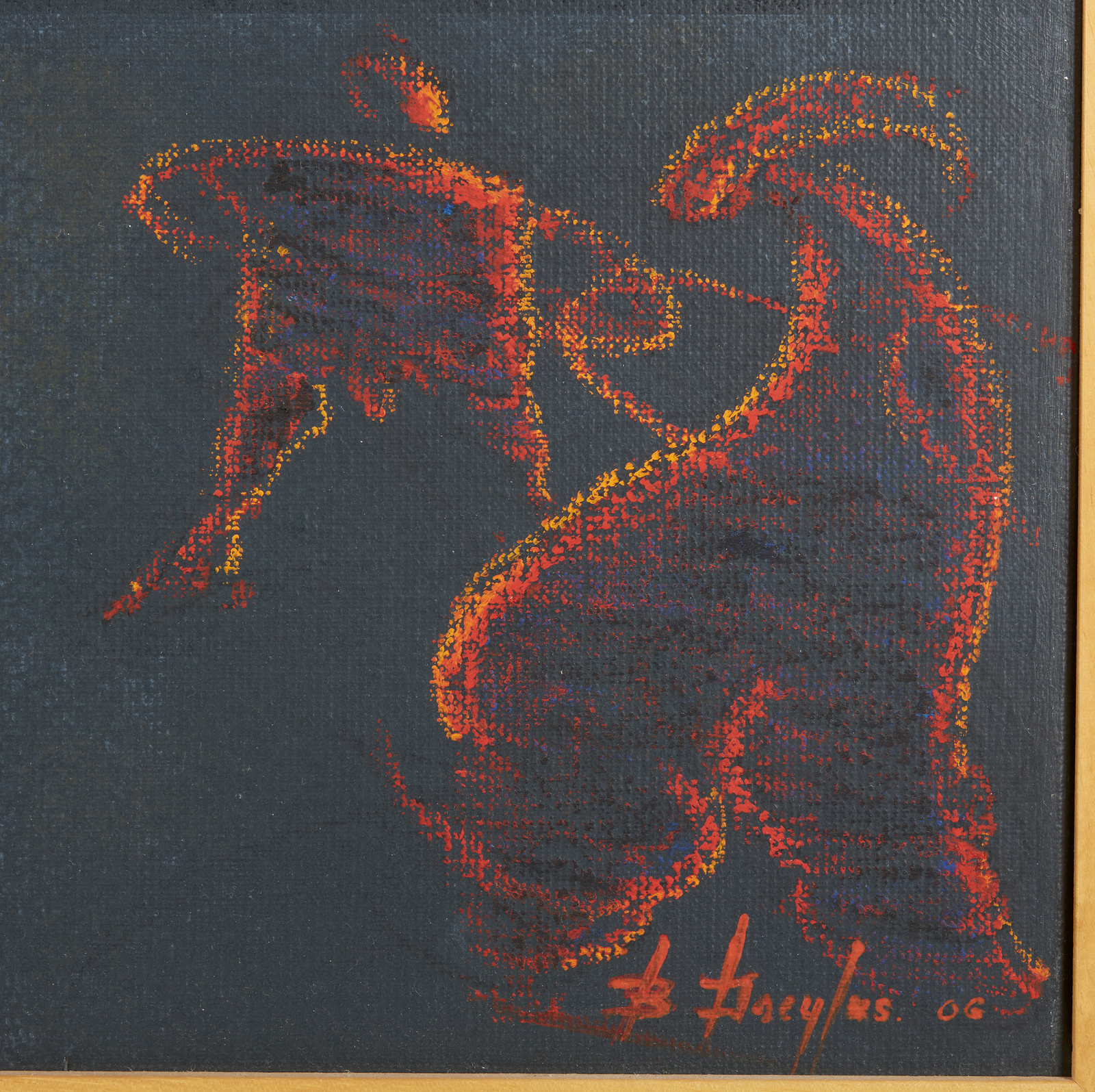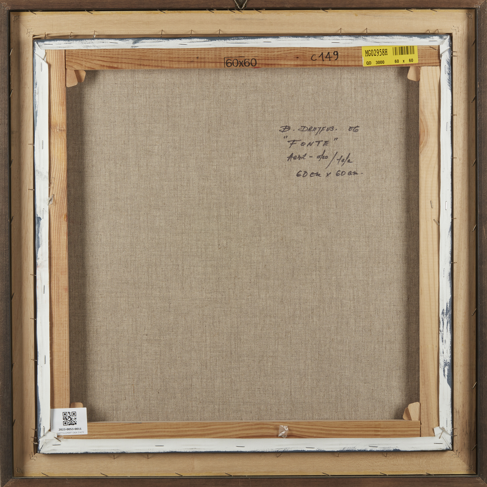 DREYFUS BERNARD (n. 1940) Fonte. 2006. Acrilico e olio su tela. Cm 60,00 x 60,00. Firma e anno in basso a destra. Al retro titolo, firma e anno. Opera archiviata presso la Galleria Dante Vecchiato, Padova, come da documentazione fotografica allegata all'opera riportante il relativo numero d'inventario. Certificato di provenienza rilasciato daTelemarket, Brescia. . Cornice presente