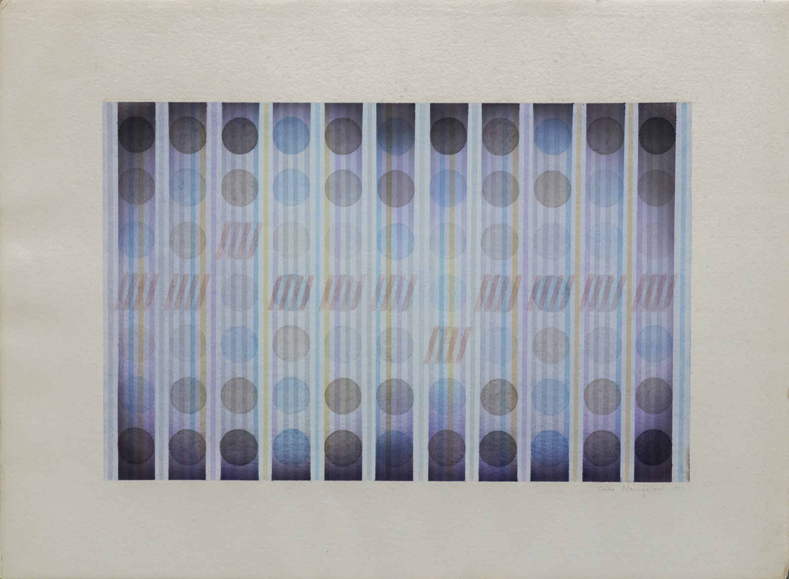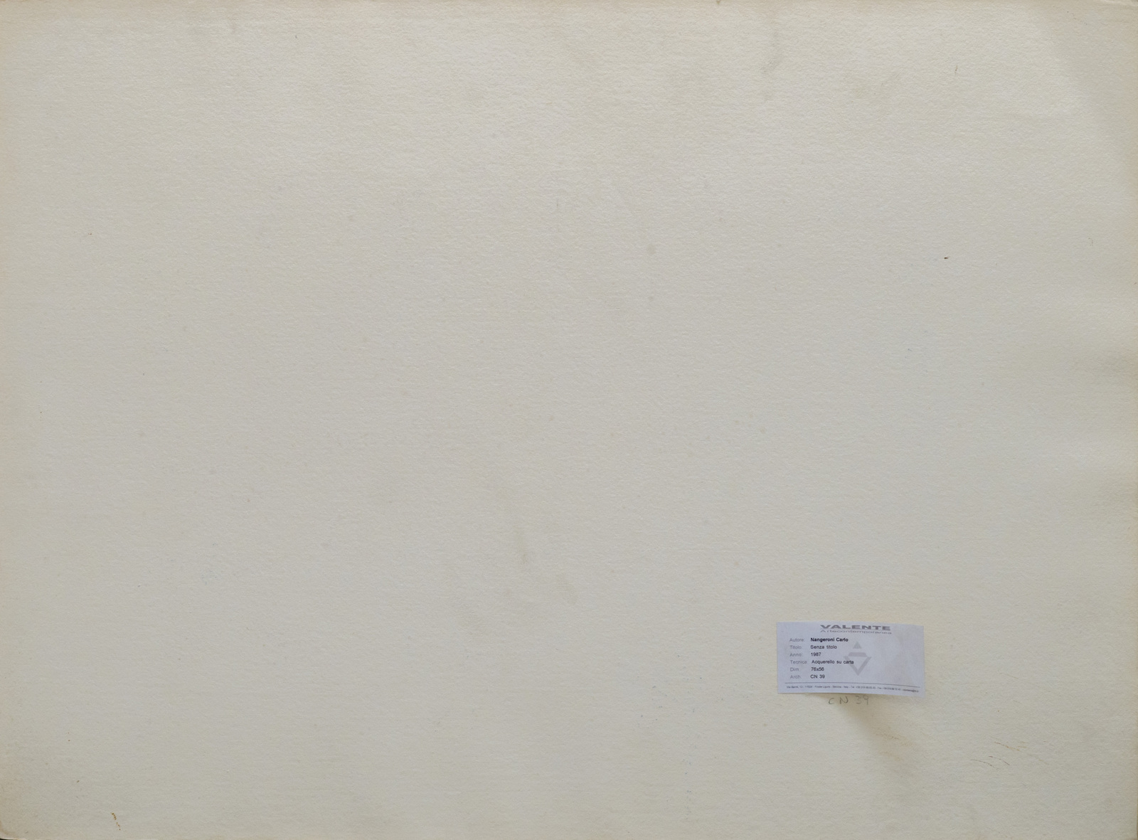 NANGERONI CARLO (n. 1922) Senza titolo. 1987. Acquerello su carta. Cm 56,00 x 76,00. Firma e anno in basso a destra. Autentica dell'artista su fotografia. Provenienza: Valente Arte Contemporanea, Finale ligure; Collezione privata, Bergamo. Lievi difetti.